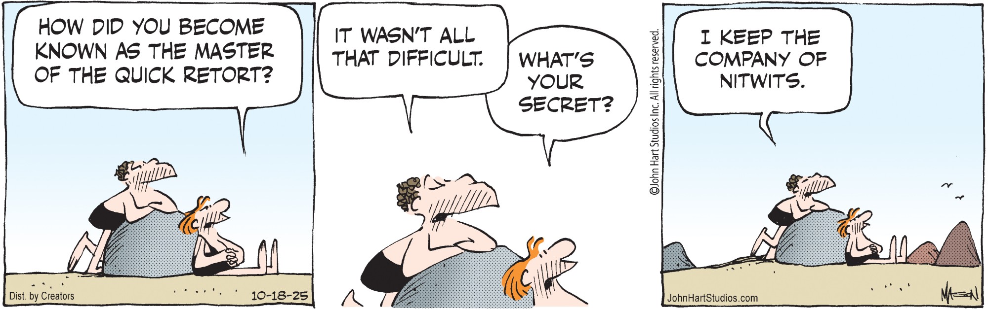 Johnny Hart’s classic strip, "B.C.," puts a caveman twist on everything. From philosophical ants to punny bits of unconventional wisdom, this strip has been a favorite for many years. Creators Syndicate