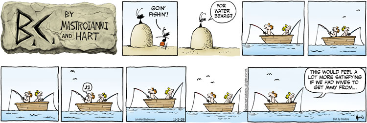 Johnny Hart’s classic strip, "B.C.," puts a caveman twist on everything. From philosophical ants to punny bits of unconventional wisdom, this strip has been a favorite for many years. Creators Syndicate