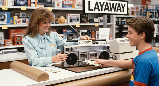 If you couldn't afford a big-ticket item at the department store, you didn't put it on a credit card—you put it on layaway. This meant the store would hold the item in the back room while you paid it off in small installments over several weeks or months.You could not take your purchase home until it was fully paid for. This system was built on patience and discipline, turning the final pickup day into a triumphant celebration of your saving skills. Image generated by Gemini