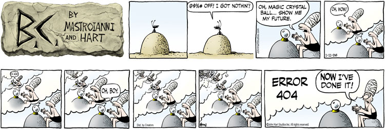 Johnny Hart’s classic strip, "B.C.," puts a caveman twist on everything. From philosophical ants to punny bits of unconventional wisdom, this strip has been a favorite for many years. Creators Syndicate