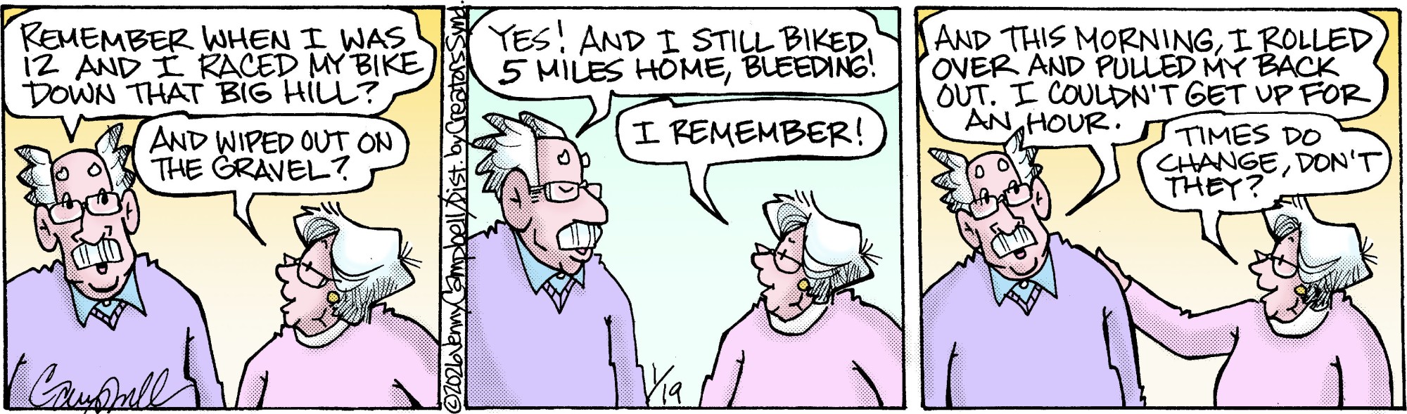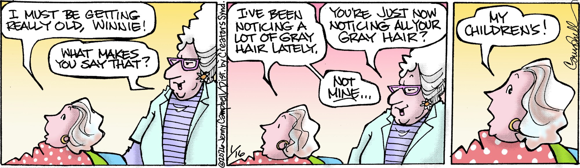Cartoonist Jenny Campbell has created a spirited and intelligent look at aging and the generation gap. This strip features a group of older women and men dealing with the perils and perks of being old, the rules of chocolate, and the challenges of families. "Flo and Friends" is graceful, poignant, and full of humor. Creators Syndicate