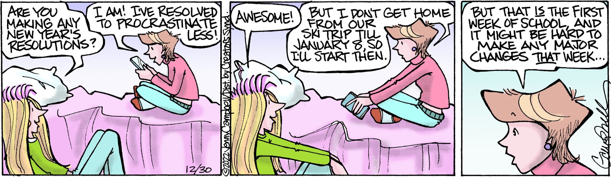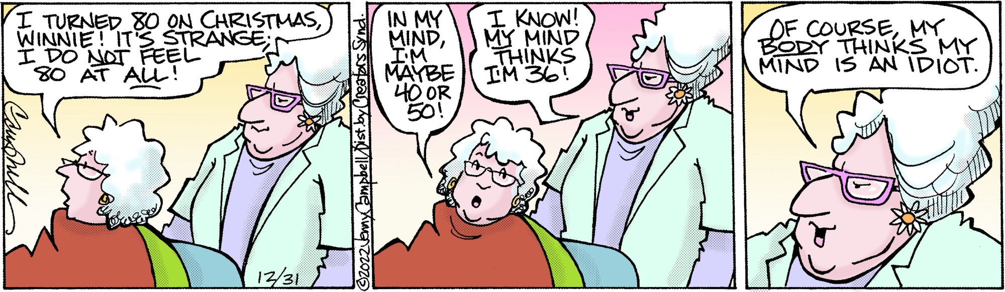 Cartoonist Jenny Campbell has created a spirited and intelligent look at aging and the generation gap. This strip features a group of older women and men dealing with the perils and perks of being old, the rules of chocolate, and the challenges of families. "Flo and Friends" is graceful, poignant, and full of humor. Creators Syndicate