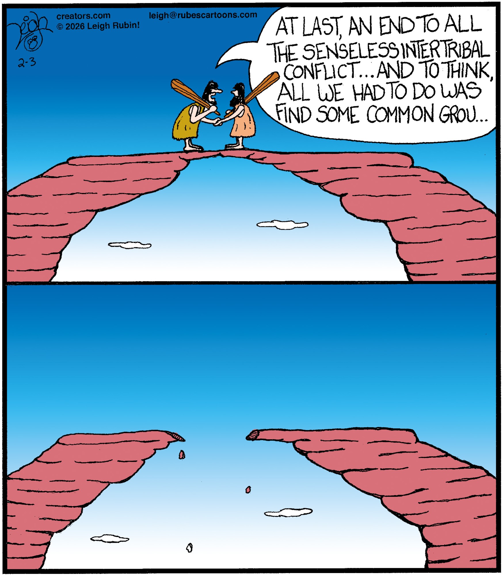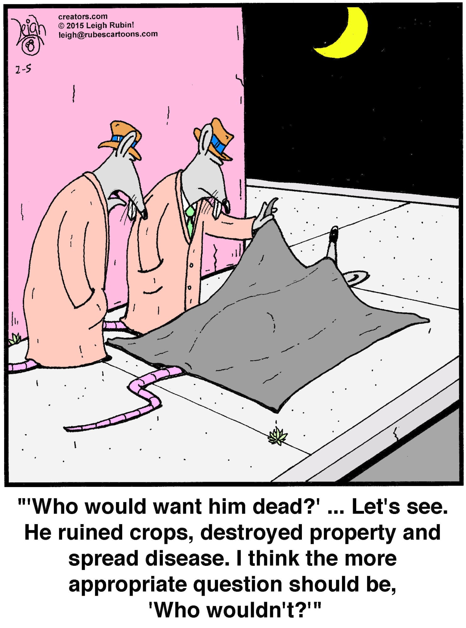 Talking cows, less-than-bright kids, and multiple varieties of flora and fauna make their appearance in the witty offbeat cartoon panel "Rubes" by Leigh Rubin. Rubin’s hilarious cast of characters and absurd view of the world have made "Rubes" a favorite with readers everywhere. Creators Syndicate