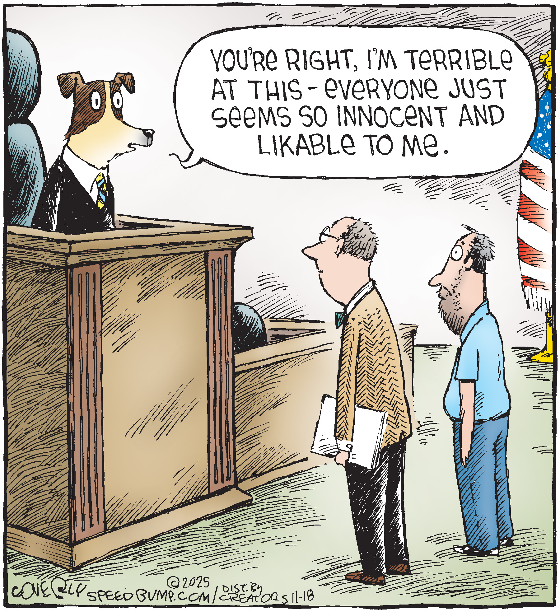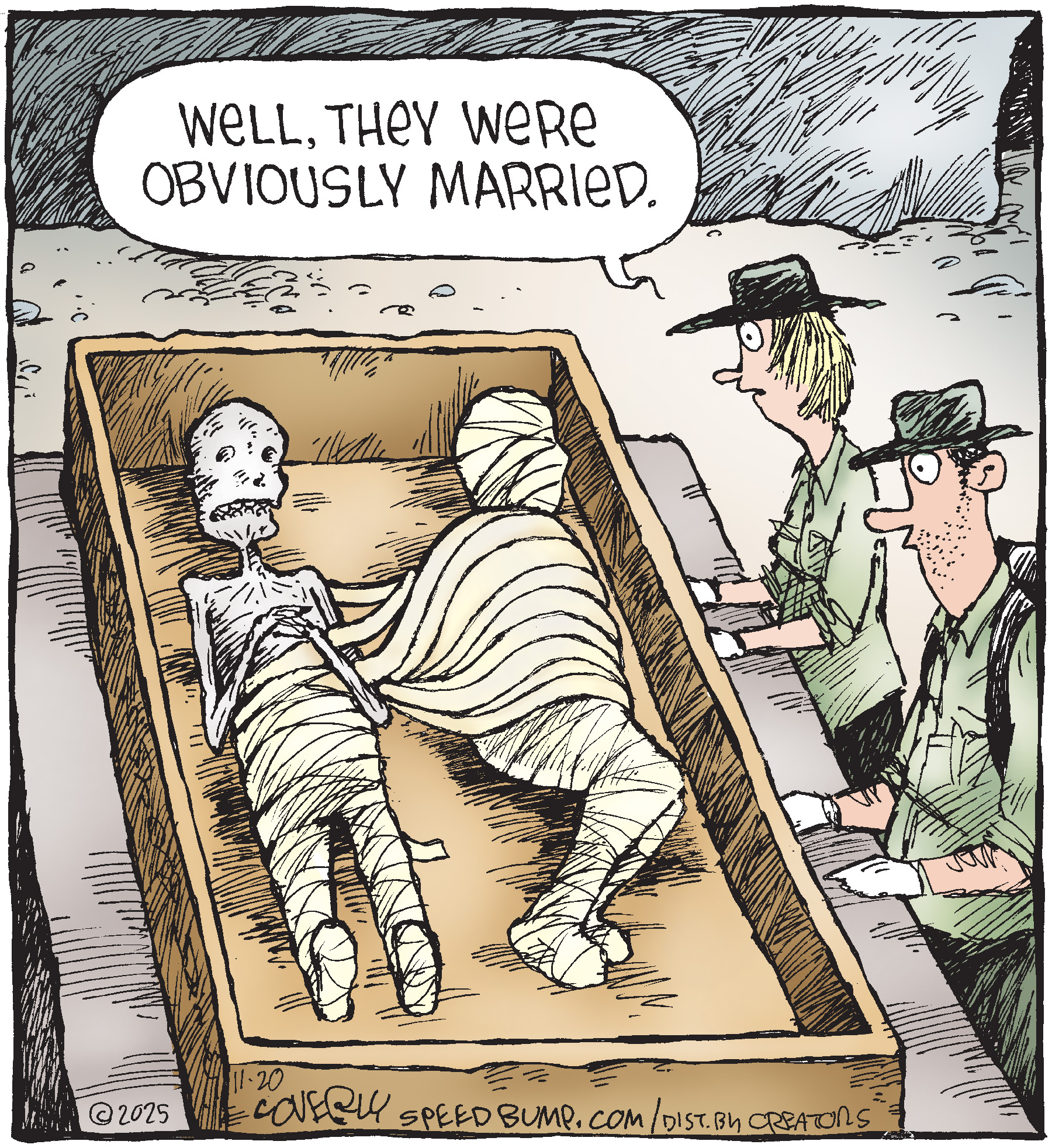 Dave Coverly admits there is no overriding theme, no tidy little philosophy that precisely describes what "Speed Bump" is about. "Basically," he says, "if life were a movie, these would be the outtakes." Creators Syndicate