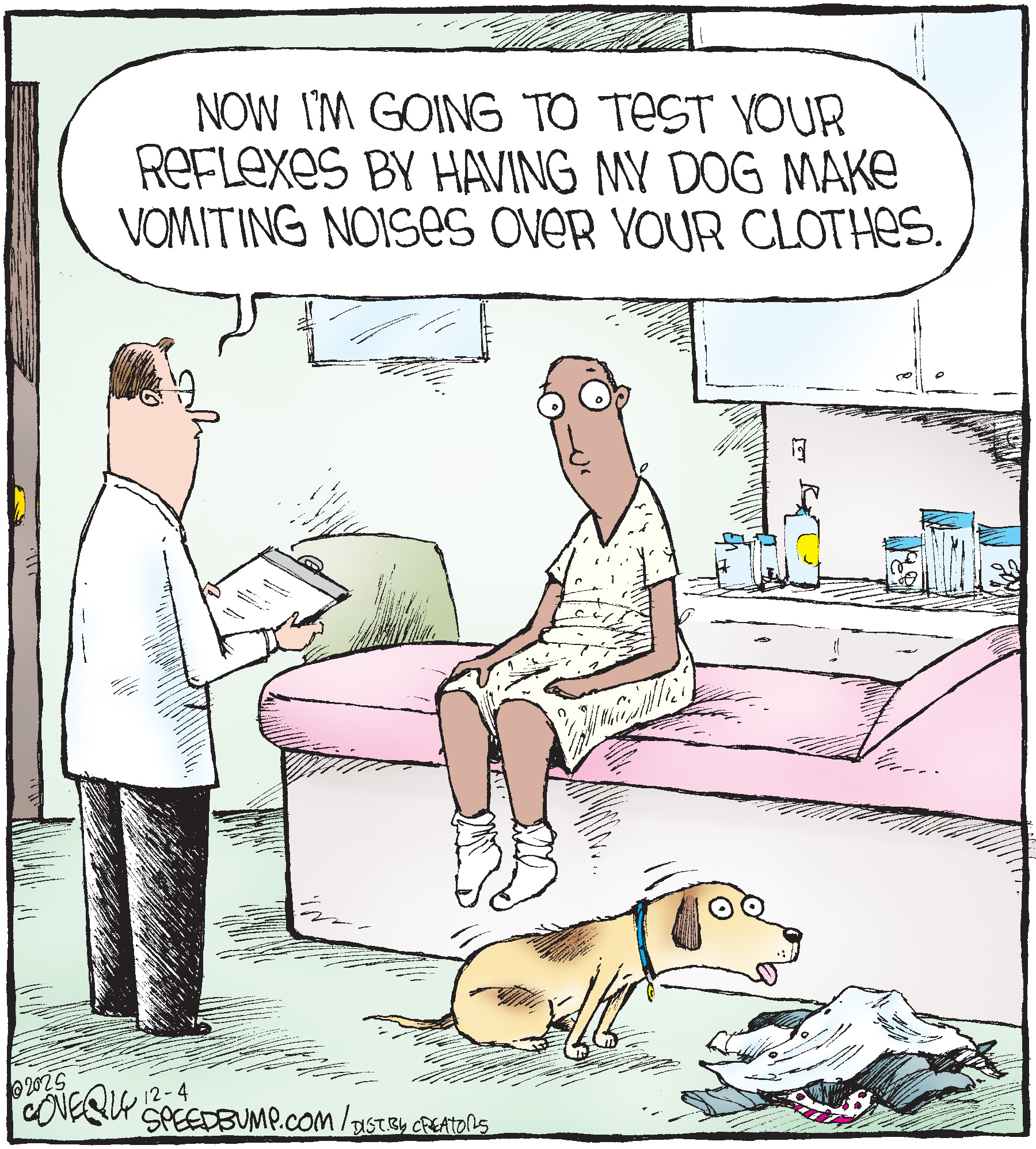 Dave Coverly admits there is no overriding theme, no tidy little philosophy that precisely describes what "Speed Bump" is about. "Basically," he says, "if life were a movie, these would be the outtakes." Creators Syndicate