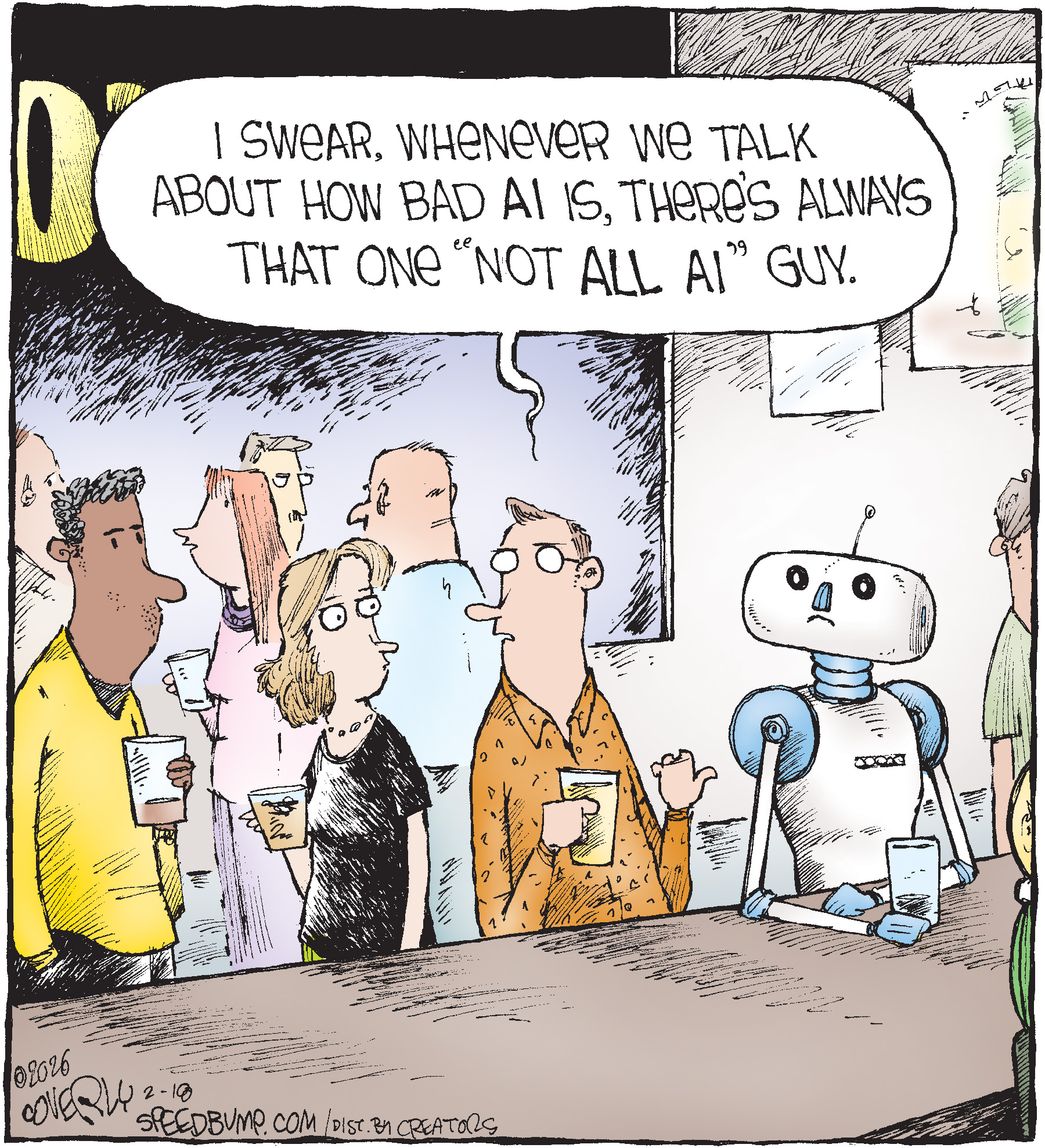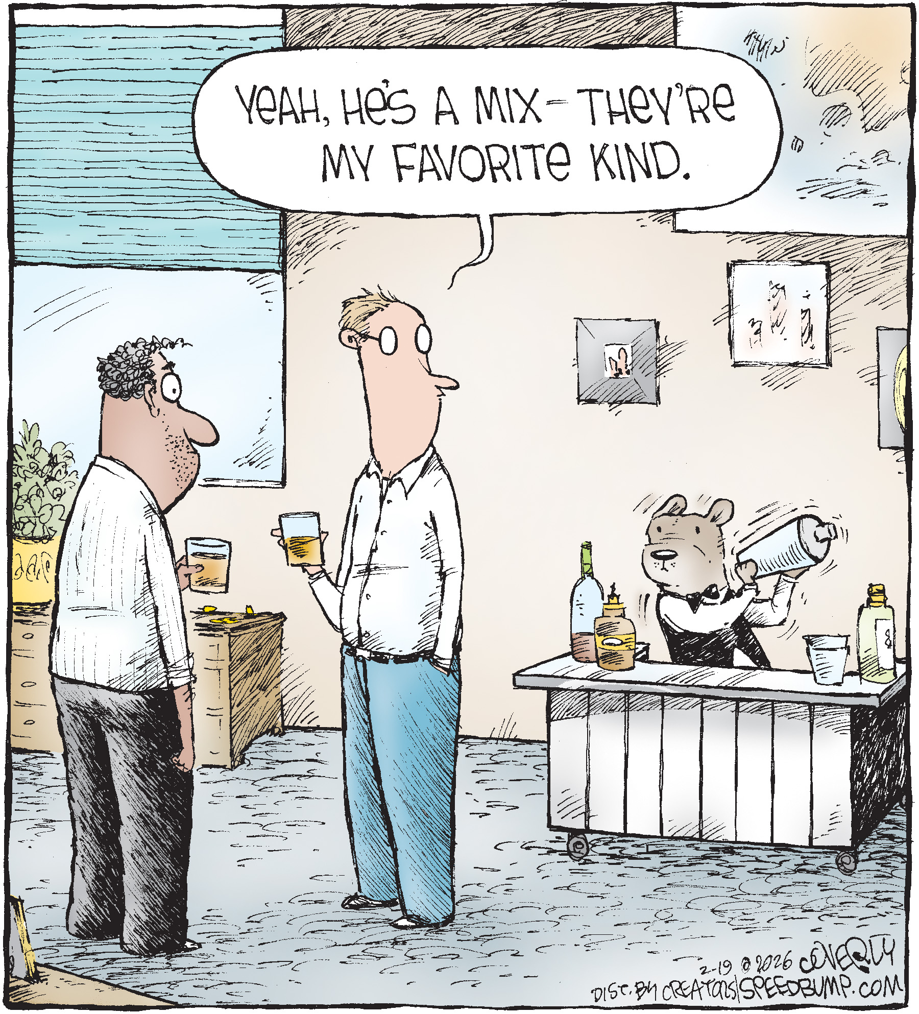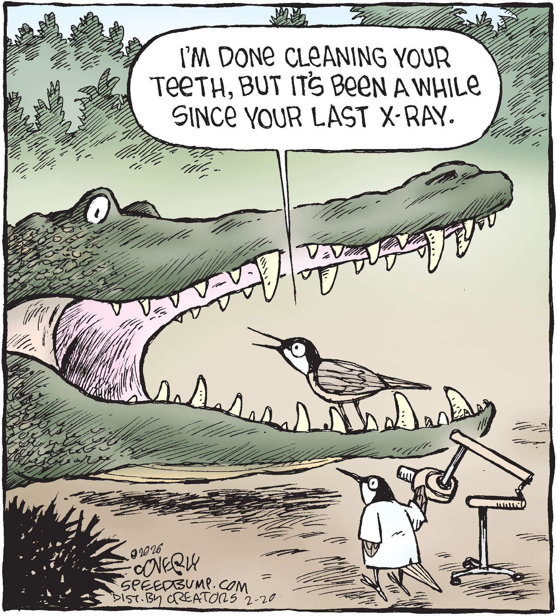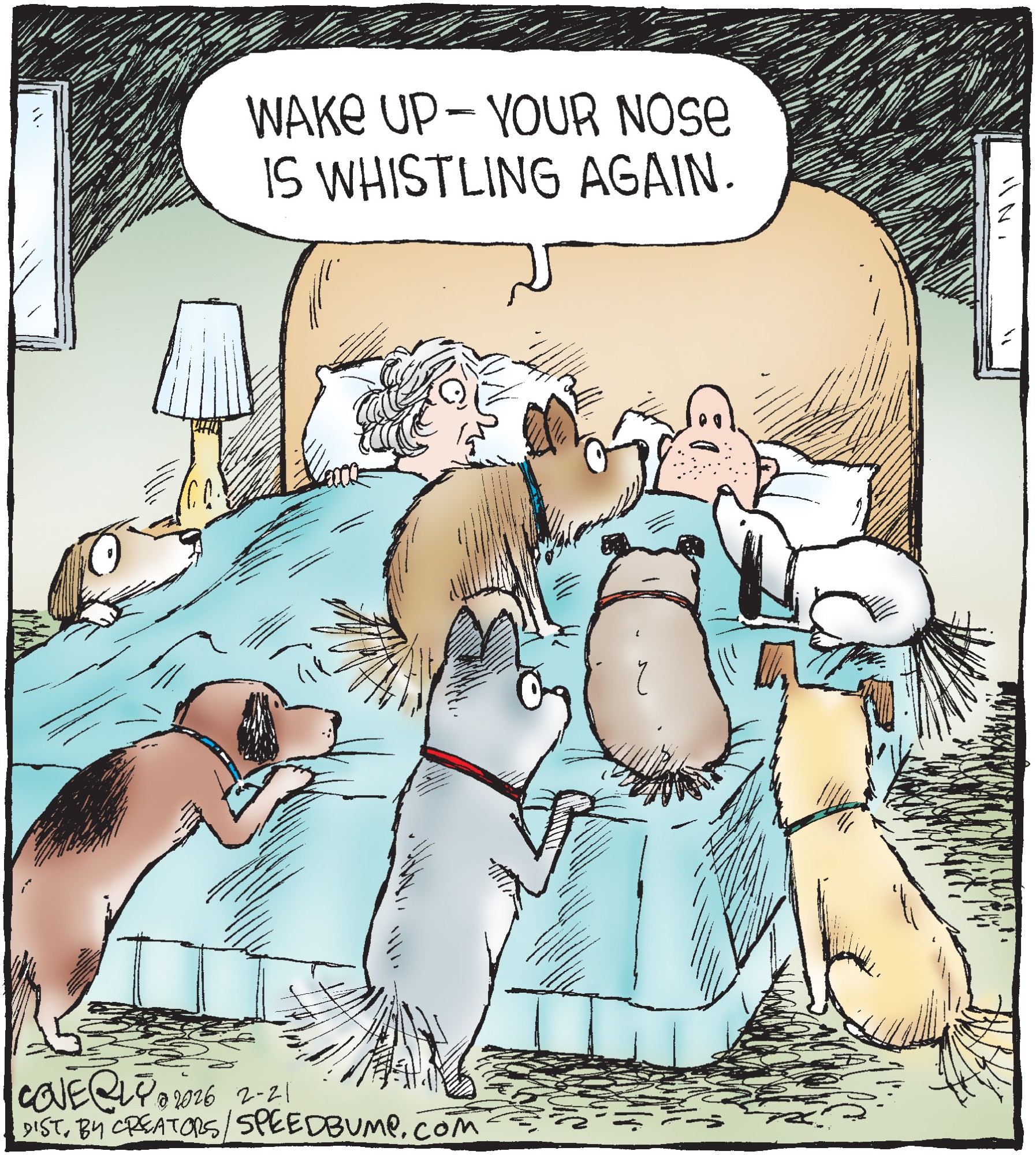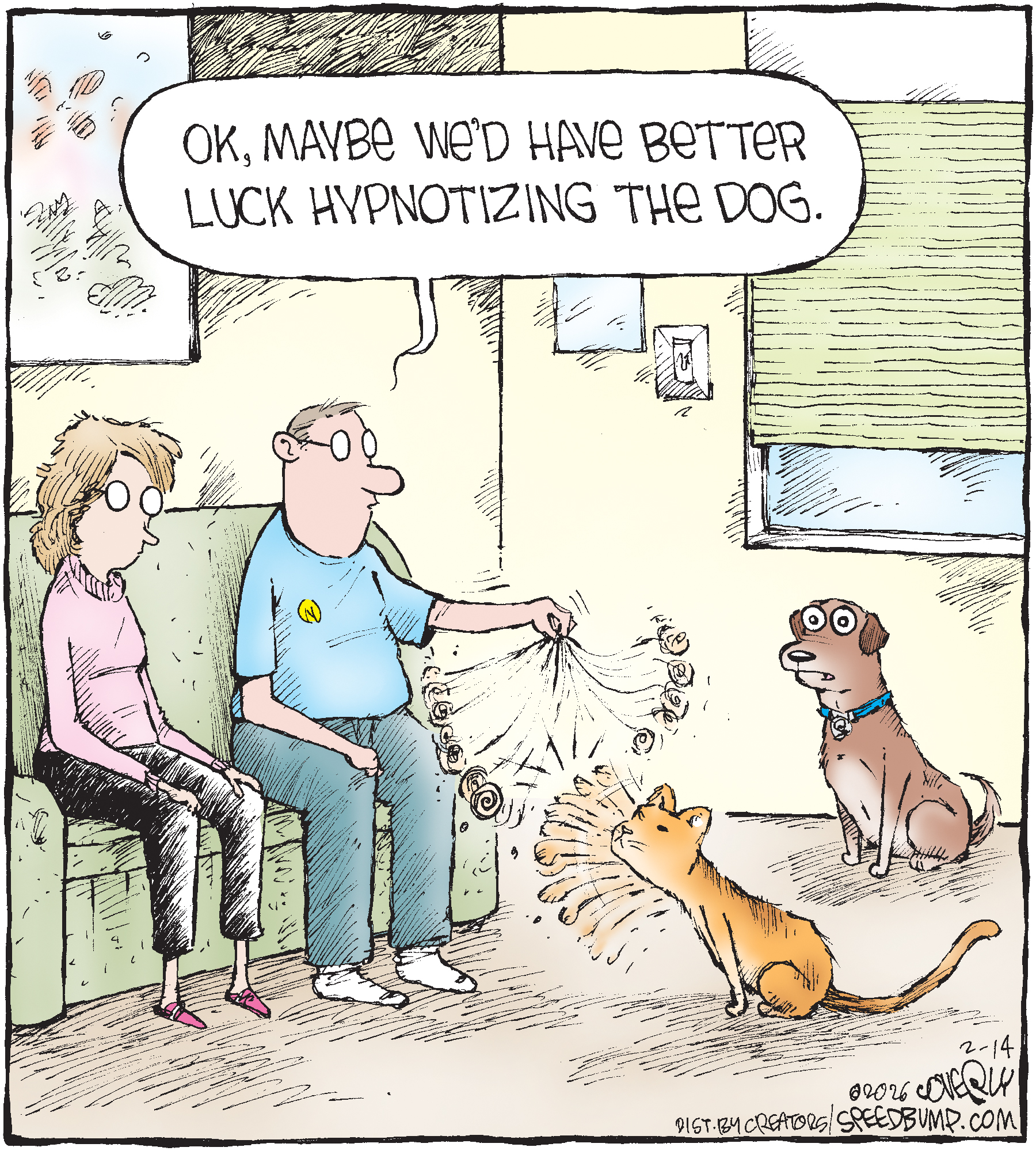 Dave Coverly admits there is no overriding theme, no tidy little philosophy that precisely describes what "Speed Bump" is about. "Basically," he says, "if life were a movie, these would be the outtakes." Creators Syndicate