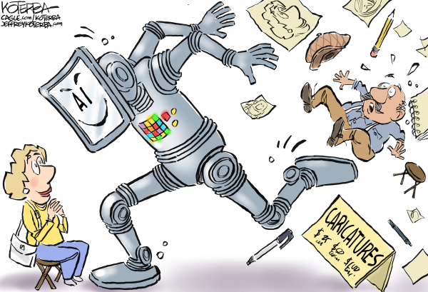 After 31 years as the cartoonist for Nebraska's largest newspaper, Jeff suddenly found himself laid off. So he greatly appreciates the support of fans to keep drawing. Jeff's brilliant and moderate editorial cartoons are syndicated around the world and his original drawings have also flown aboard space shuttle Discovery. He's given Ted talks and is the lead singer, guitarist, and songwriter for the Prairie Cats, a swing and jump-blues band that has performed around the U.S. including the South by Southwest Music Festival. And he may be the most popular cartoonist with editors on all of Cagle.com. Cagle Cartoons
