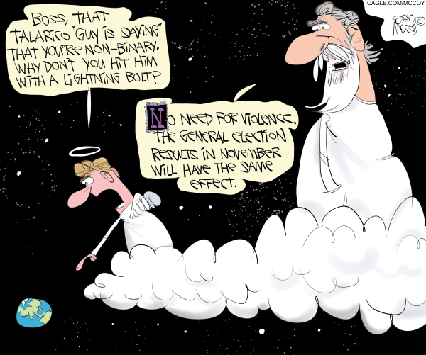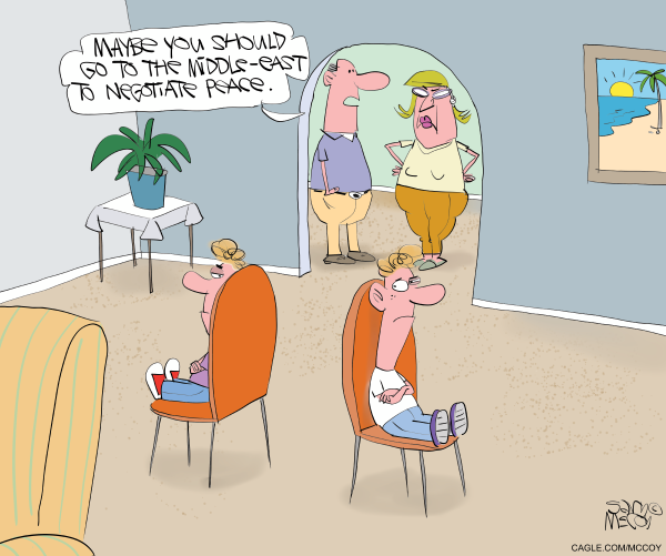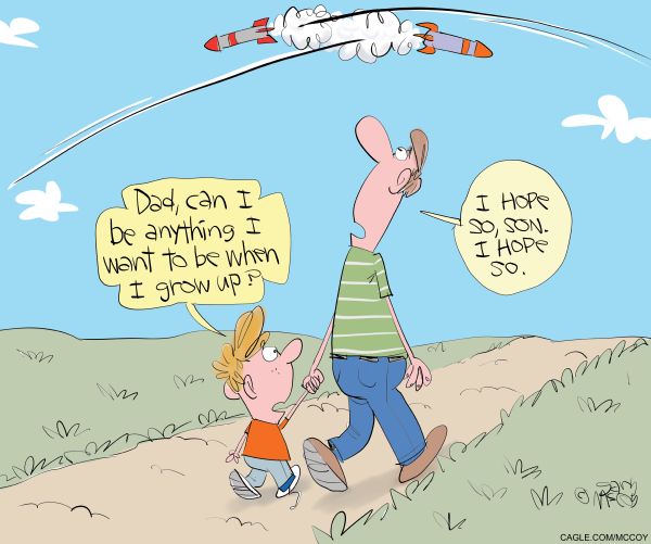 Gary McCoy creates the internationally-syndicated comic panel, The Flying McCoys. He has won Silver Reuben awards from the National Cartoonists Society for his greeting cards and magazine gag cartoons, and has freelanced for Playboy, PARADE Magazine, and too many more to name. He lives in the St. Louis area with his wife and son, and ‘59 Chevy pickup. Cagle Cartoons