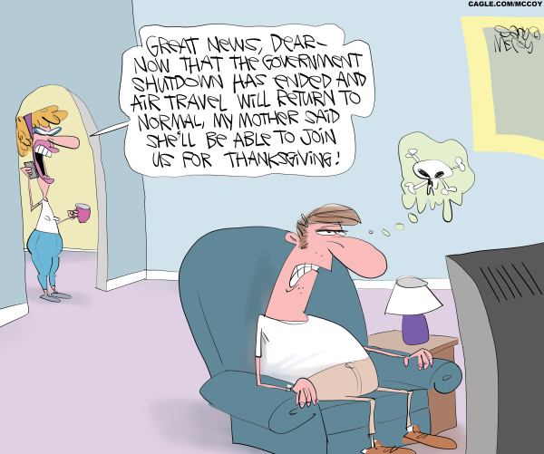 Gary McCoy creates the internationally-syndicated comic panel, The Flying McCoys. He has won Silver Reuben awards from the National Cartoonists Society for his greeting cards and magazine gag cartoons, and has freelanced for Playboy, PARADE Magazine, and too many more to name. He lives in the St. Louis area with his wife and son, and ‘59 Chevy pickup. Cagle Cartoons