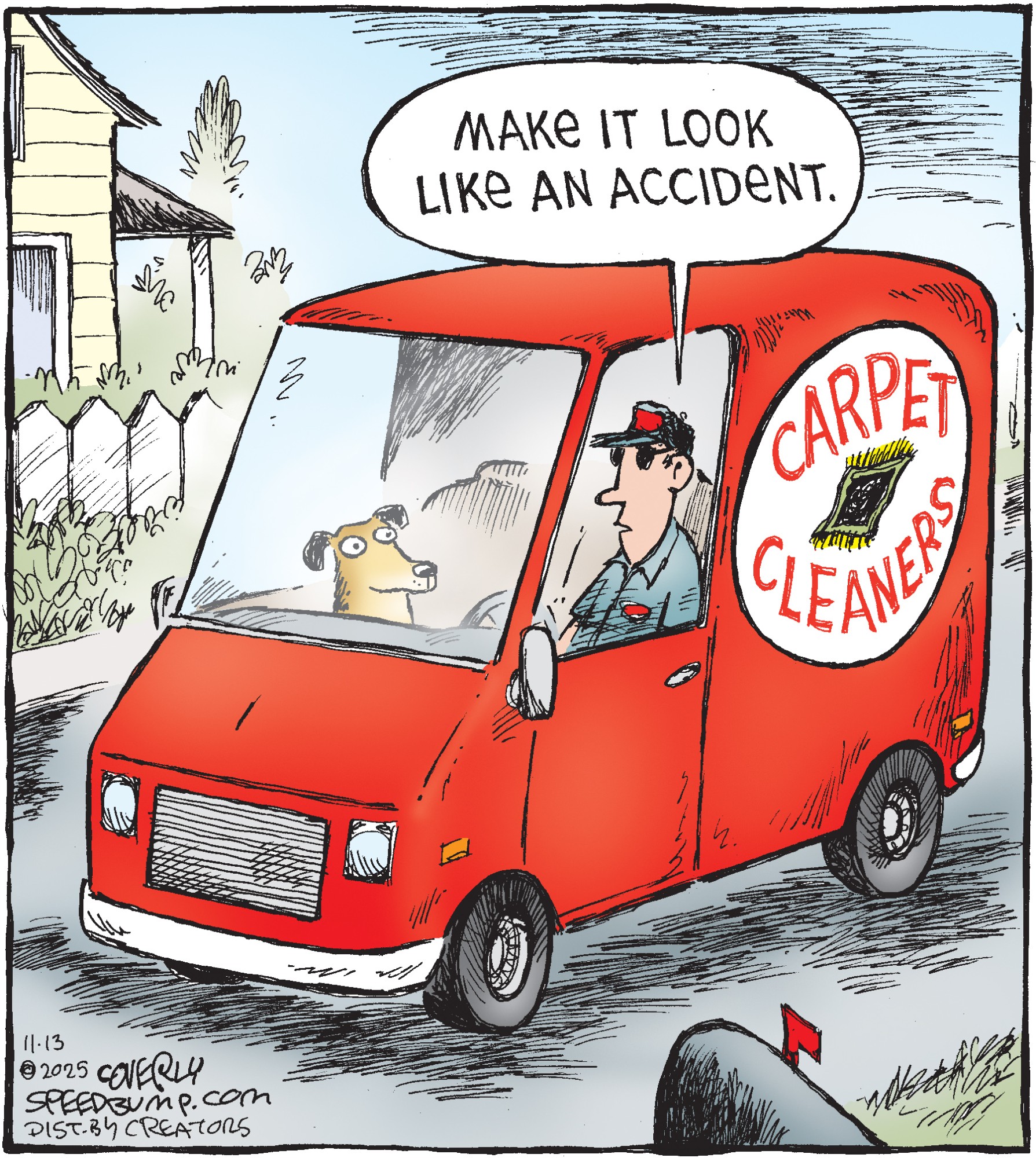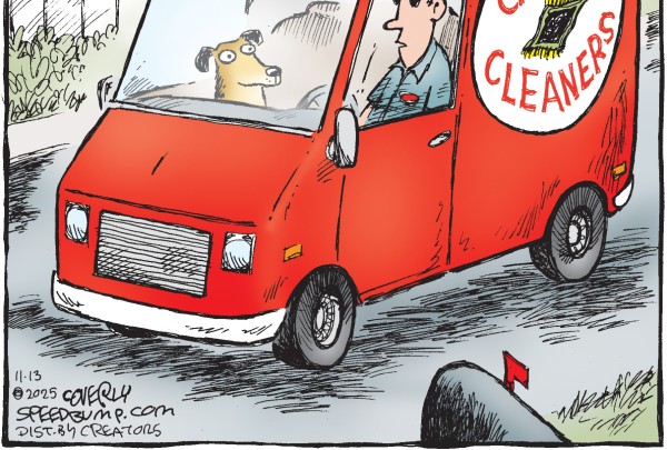 Dave Coverly admits there is no overriding theme, no tidy little philosophy that precisely describes what "Speed Bump" is about. "Basically," he says, "if life were a movie, these would be the outtakes." Creators Syndicate