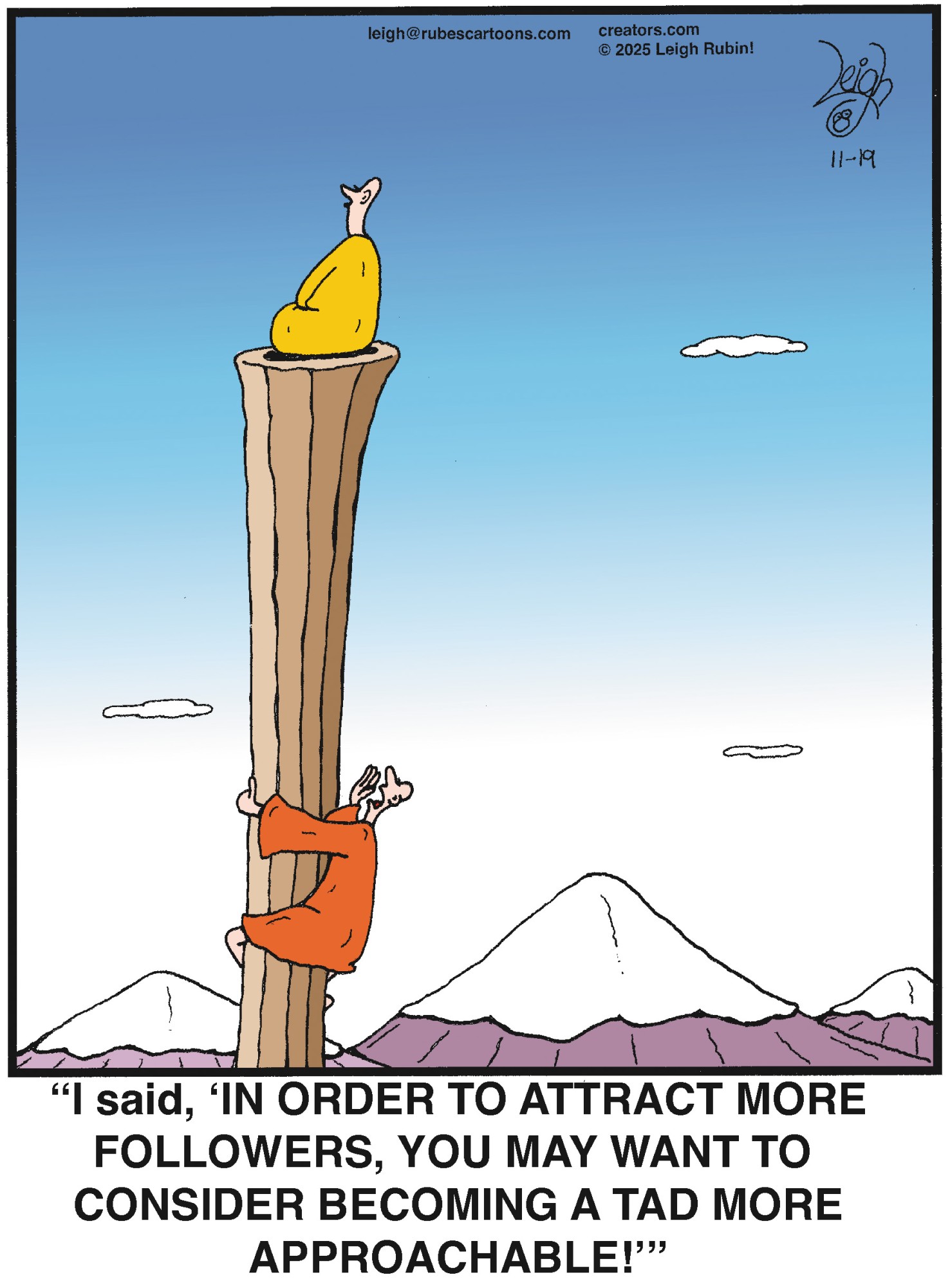 Talking cows, less-than-bright kids, and multiple varieties of flora and fauna make their appearance in the witty offbeat cartoon panel “Rubes” by Leigh Rubin. Rubin’s hilarious cast of characters and absurd view of the world have made “Rubes” a favorite with readers everywhere.