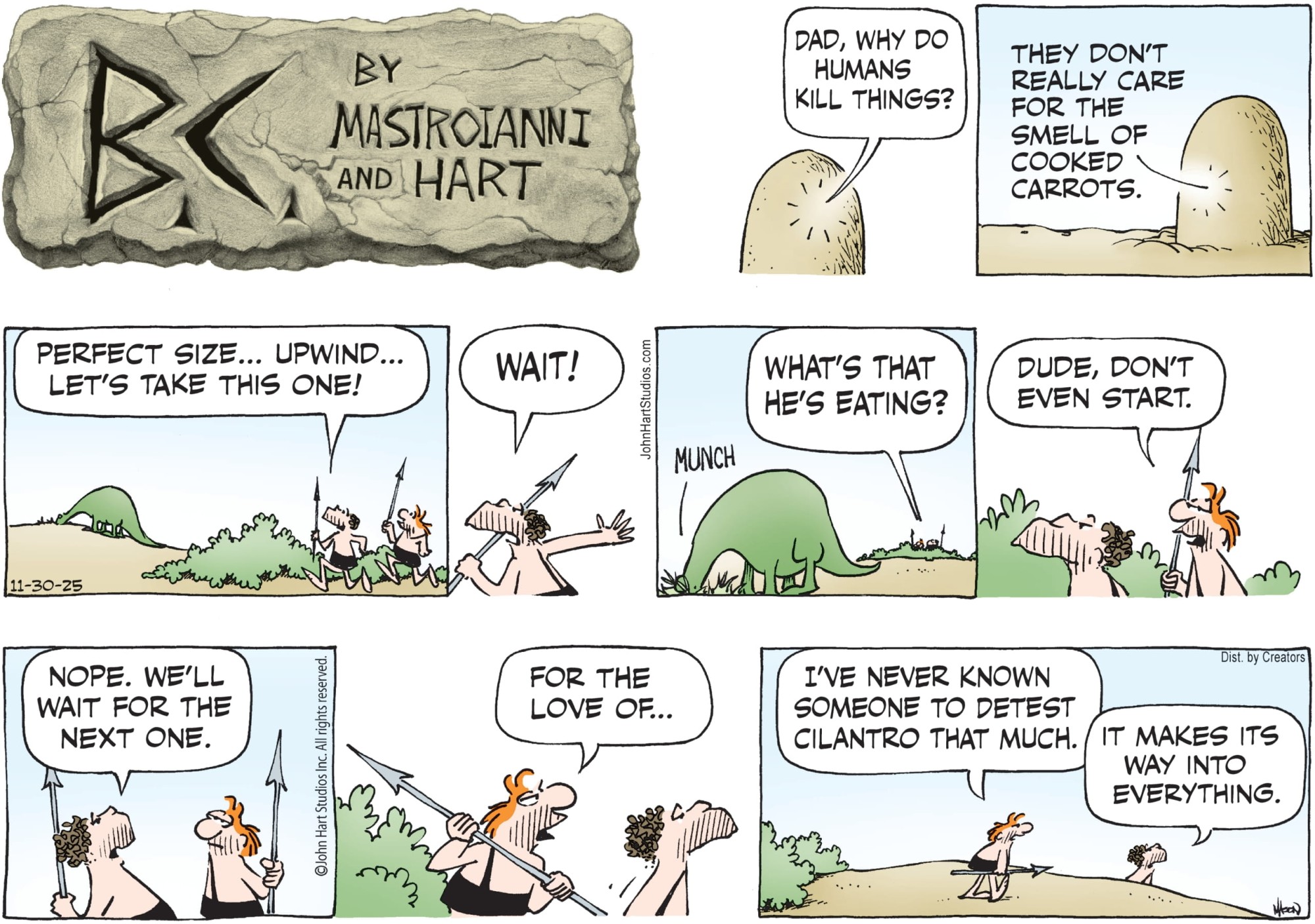 Johnny Hart’s classic strip, “B.C.,” puts a caveman twist on everything. From philosophical ants to punny bits of unconventional wisdom, this strip has been a favorite for many years.