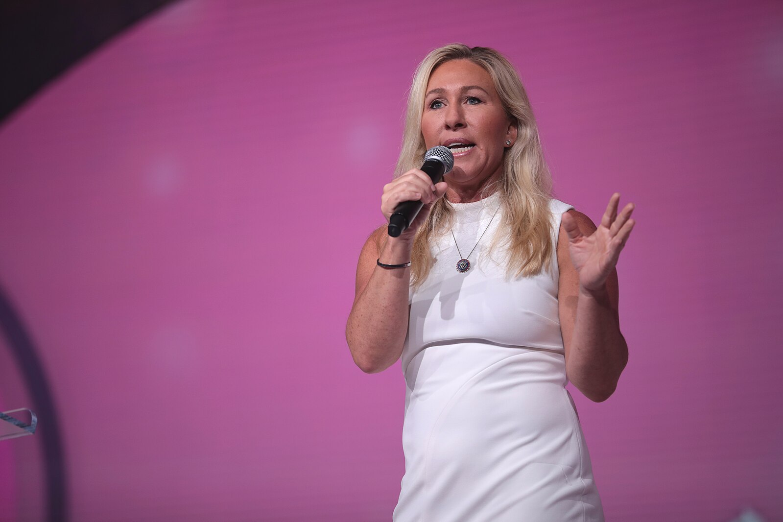 Greene argued that Americans do not need political spin to understand their own financial reality. “People know what they’re paying at the grocery store,” she said. “They know what they’re paying for their kids’ clothes and school supplies. They know what they’re paying for their electricity bills.” Gage Skidmore from Surprise, AZ, United States of America, CC BY-SA 2.0 https://creativecommons.org/licenses/by-sa/2.0, via Wikimedia Commons
