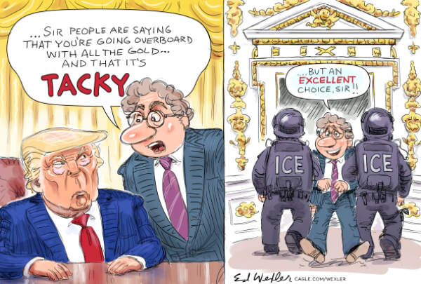Ed served as a Creative Director at Disney Television Animation for nearly 30 years. He was also the illustrator for the Washington Whispers page in US News and World Report for 11 years, and created a series of popular group caricature covers and spreads for The Hollywood Reporter’s Emmy Awards and Academy Awards special issues for many years as well. Ed was nominated for an Emmy Award for animation direction. His editorial cartoons are internationally syndicated by Cagle Cartoons. Cagle Cartoons