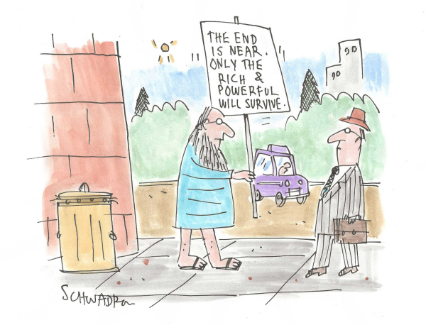 Harley Schwadron is a cartoonist in Ann Arbor, Michigan. His cartoons have appeared in many major publications, including Barron’s, Harvard Business Review, Punch, Playboy, American Legion, New York Times, and Readers Digest. Many of Harley's cartoons deal with business, politics and financial investing. He has illustrated some 50 books. Cagle Cartoons
