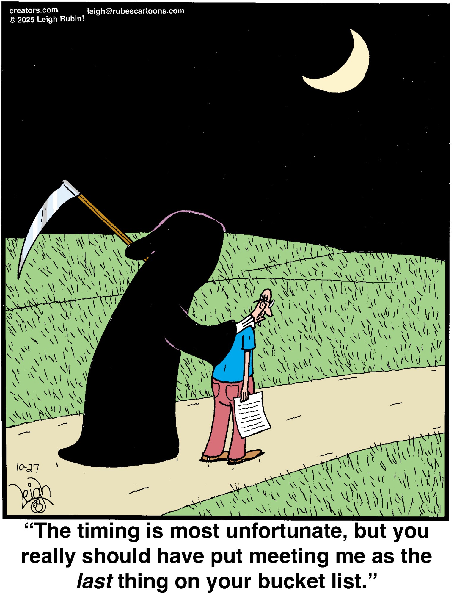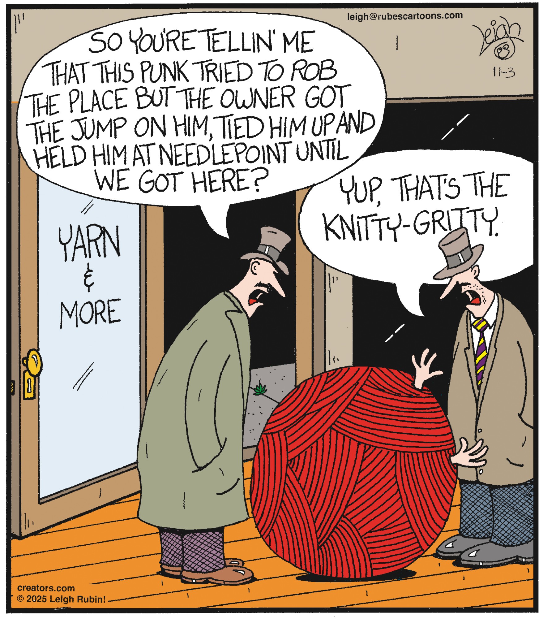 Talking cows, less-than-bright kids, and multiple varieties of flora and fauna make their appearance in the witty offbeat cartoon panel "Rubes" by Leigh Rubin. Rubin’s hilarious cast of characters and absurd view of the world have made "Rubes" a favorite with readers everywhere. Creators Syndicate