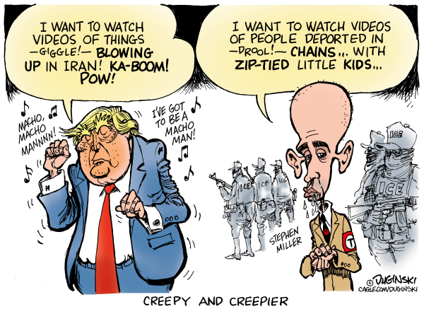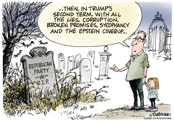 Paul Duginski has spent a half-century in journalism, including 27-1/2 years at the Los Angeles Times, and 13 years at the Sacramento Bee. His cartoons have appeared in the L.A. Times, the New York Times, the Christian Science Monitor, the San Jose Mercury News, the San Francisco Examiner and the McClatchy Bee newspapers in California, among other places. He was an award-winning graphics journalist at the L.A. Times. Cagle Cartoons