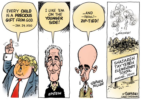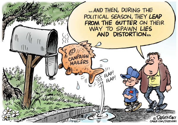 Paul Duginski has spent a half-century in journalism, including 27-1/2 years at the Los Angeles Times, and 13 years at the Sacramento Bee. His cartoons have appeared in the L.A. Times, the New York Times, the Christian Science Monitor, the San Jose Mercury News, the San Francisco Examiner and the McClatchy Bee newspapers in California, among other places. He was an award-winning graphics journalist at the L.A. Times. Cagle Cartoons