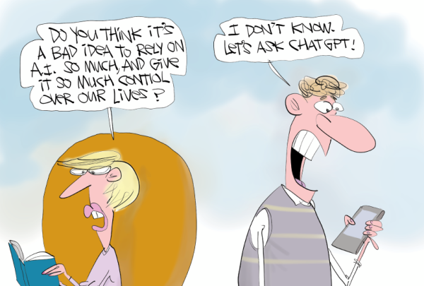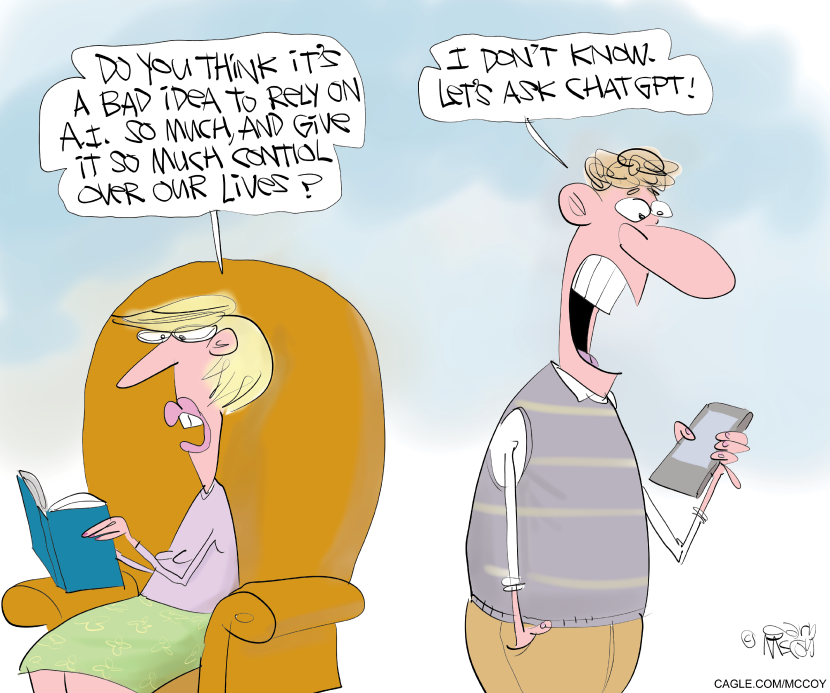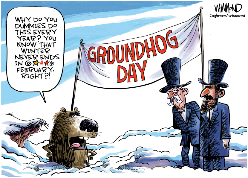 The most reprinted was a funny Gary McCoy riff on our growing dependence on chatbots and A.I. Dave Whamond – and not a robot – drew four of our 10 most popular cartoons this week, including a funny Groundhog Day gag and a pointed toon about the Jeff Bezos-owned Post dying in darkness after laying off a third of the staff.