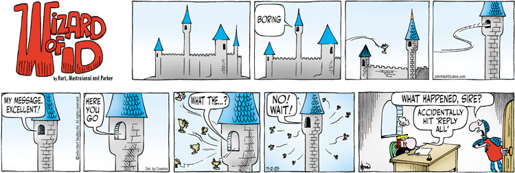 About Wizard of Id - "Wizard of Id" has captivated audiences since 1964, created by artist Brant Parker and writer Johnny Hart. Their journey began in 1950 when Parker, a Binghamton Press staff artist, judged a high school art contest where he discovered Hart's talent. Impressed by his work, Parker arranged a meeting, forming a creative partnership that led to the beloved comic classic set in the Kingdom of Id, blending humor and satire. Creators SyndicateAbout Wizard of Id - "Wizard of Id" has captivated audiences since 1964, created by artist Brant Parker and writer Johnny Hart. Their journey began in 1950 when Parker, a Binghamton Press staff artist, judged a high school art contest where he discovered Hart's talent. Impressed by his work, Parker arranged a meeting, forming a creative partnership that led to the beloved comic classic set in the Kingdom of Id, blending humor and satire. Creators SyndicateAbout Wizard of Id - "Wizard of Id" has captivated audiences since 1964, created by artist Brant Parker and writer Johnny Hart. Their journey began in 1950 when Parker, a Binghamton Press staff artist, judged a high school art contest where he discovered Hart's talent. Impressed by his work, Parker arranged a meeting, forming a creative partnership that led to the beloved comic classic set in the Kingdom of Id, blending humor and satire. Creators SyndicateAbout Wizard of Id - "Wizard of Id" has captivated audiences since 1964, created by artist Brant Parker and writer Johnny Hart. Their journey began in 1950 when Parker, a Binghamton Press staff artist, judged a high school art contest where he discovered Hart's talent. Impressed by his work, Parker arranged a meeting, forming a creative partnership that led to the beloved comic classic set in the Kingdom of Id, blending humor and satire. Creators SyndicateAbout Wizard of Id - "Wizard of Id" has captivated audiences since 1964, created by artist Brant Parker and writer Johnny Hart. Their journey began in 1950 when Parker, a Binghamton Press staff artist, judged a high school art contest where he discovered Hart's talent. Impressed by his work, Parker arranged a meeting, forming a creative partnership that led to the beloved comic classic set in the Kingdom of Id, blending humor and satire. Creators SyndicateAbout Wizard of Id - "Wizard of Id" has captivated audiences since 1964, created by artist Brant Parker and writer Johnny Hart. Their journey began in 1950 when Parker, a Binghamton Press staff artist, judged a high school art contest where he discovered Hart's talent. Impressed by his work, Parker arranged a meeting, forming a creative partnership that led to the beloved comic classic set in the Kingdom of Id, blending humor and satire. Creators SyndicateAbout Wizard of Id - "Wizard of Id" has captivated audiences since 1964, created by artist Brant Parker and writer Johnny Hart. Their journey began in 1950 when Parker, a Binghamton Press staff artist, judged a high school art contest where he discovered Hart's talent. Impressed by his work, Parker arranged a meeting, forming a creative partnership that led to the beloved comic classic set in the Kingdom of Id, blending humor and satire. Creators SyndicateAbout Wizard of Id - "Wizard of Id" has captivated audiences since 1964, created by artist Brant Parker and writer Johnny Hart. Their journey began in 1950 when Parker, a Binghamton Press staff artist, judged a high school art contest where he discovered Hart's talent. Impressed by his work, Parker arranged a meeting, forming a creative partnership that led to the beloved comic classic set in the Kingdom of Id, blending humor and satire. Creators SyndicateAbout Wizard of Id - "Wizard of Id" has captivated audiences since 1964, created by artist Brant Parker and writer Johnny Hart. Their journey began in 1950 when Parker, a Binghamton Press staff artist, judged a high school art contest where he discovered Hart's talent. Impressed by his work, Parker arranged a meeting, forming a creative partnership that led to the beloved comic classic set in the Kingdom of Id, blending humor and satire. Creators SyndicateAbout Wizard of Id - "Wizard of Id" has captivated audiences since 1964, created by artist Brant Parker and writer Johnny Hart. Their journey began in 1950 when Parker, a Binghamton Press staff artist, judged a high school art contest where he discovered Hart's talent. Impressed by his work, Parker arranged a meeting, forming a creative partnership that led to the beloved comic classic set in the Kingdom of Id, blending humor and satire. Creators SyndicateAbout Wizard of Id - "Wizard of Id" has captivated audiences since 1964, created by artist Brant Parker and writer Johnny Hart. Their journey began in 1950 when Parker, a Binghamton Press staff artist, judged a high school art contest where he discovered Hart's talent. Impressed by his work, Parker arranged a meeting, forming a creative partnership that led to the beloved comic classic set in the Kingdom of Id, blending humor and satire. Creators SyndicateAbout Wizard of Id - "Wizard of Id" has captivated audiences since 1964, created by artist Brant Parker and writer Johnny Hart. Their journey began in 1950 when Parker, a Binghamton Press staff artist, judged a high school art contest where he discovered Hart's talent. Impressed by his work, Parker arranged a meeting, forming a creative partnership that led to the beloved comic classic set in the Kingdom of Id, blending humor and satire. Creators SyndicateAbout Wizard of Id - "Wizard of Id" has captivated audiences since 1964, created by artist Brant Parker and writer Johnny Hart. Their journey began in 1950 when Parker, a Binghamton Press staff artist, judged a high school art contest where he discovered Hart's talent. Impressed by his work, Parker arranged a meeting, forming a creative partnership that led to the beloved comic classic set in the Kingdom of Id, blending humor and satire. Creators SyndicateAbout Wizard of Id -