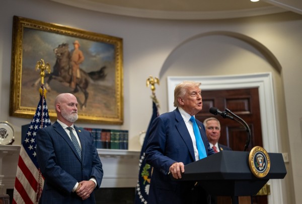 President Donald Trump delivers remarks to military families at Fort Bragg, North Carolina, Friday, February 13, 2026. (Official White House Photo by Daniel Torok)