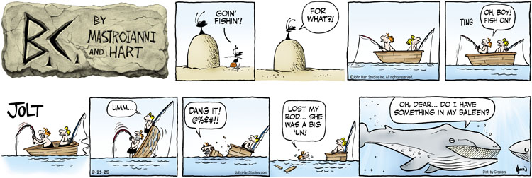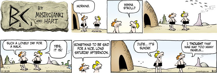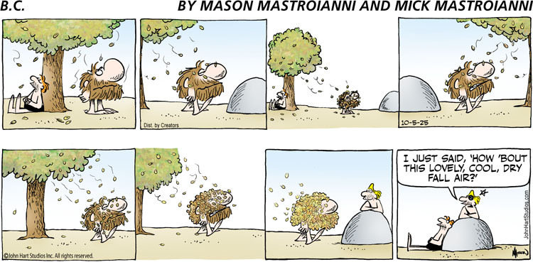 Johnny Hart’s classic strip, "B.C.," puts a caveman twist on everything. From philosophical ants to punny bits of unconventional wisdom, this strip has been a favorite for many years. Creators Syndicate