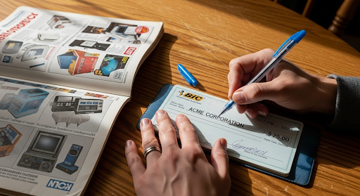 There was no 'click to pay.' Ordering from a catalog or a TV ad involved a multi-step ritual. First, you had to carefully fill out a paper order form, ensuring no mistakes. Then, you'd write a personal check or get a money order from the post office. Finally, you'd put it all in an envelope, stick on a stamp, and drop it in a mailbox, sending your payment on its own slow journey.Only after the company received and processed your check would the '6-8 week' countdown even begin. For kids, however, the most important mail didn't involve checks at all—it involved circling dreams. Image generated by Gemini