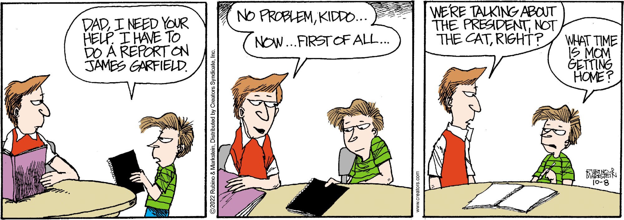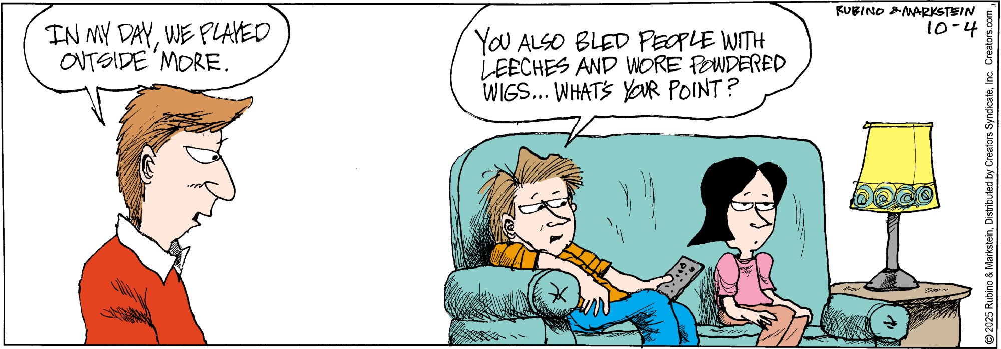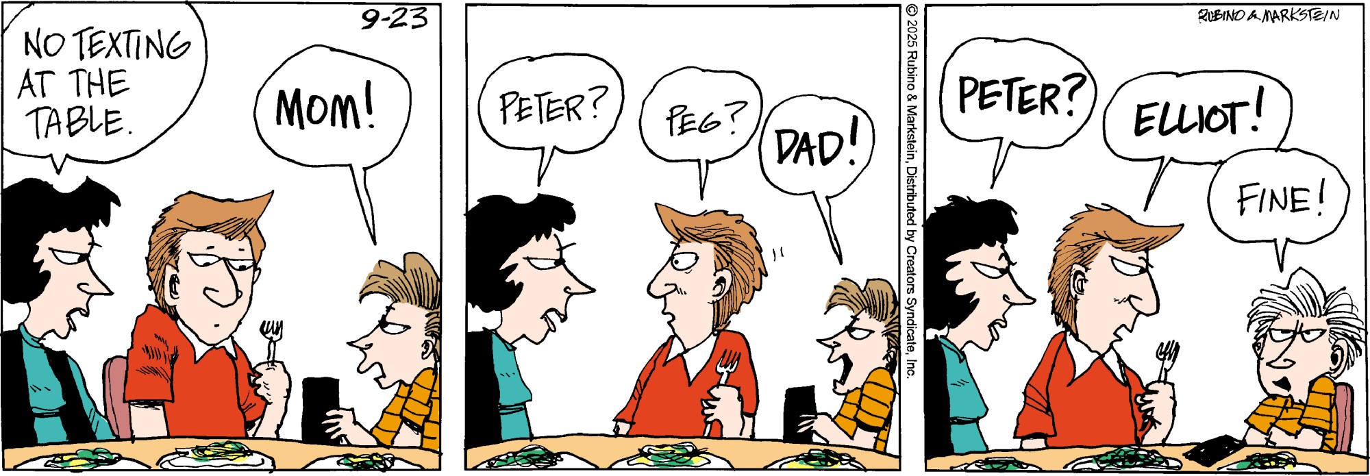 "Daddy’s Home" is a contemporary family comic with an emphasis on the role of the modern father. No other cartoon feature examines domesticity from this uniquely male perspective while remaining universally appealing to both genders. Through the eyes of a stay-at-home-dad, "Daddy’s Home" casts a unique light on everyday situations. With biting sarcasm and sharp wit, Peter and a cast of supporting characters navigate the turbulent waters of modern family life. Creators Syndicate