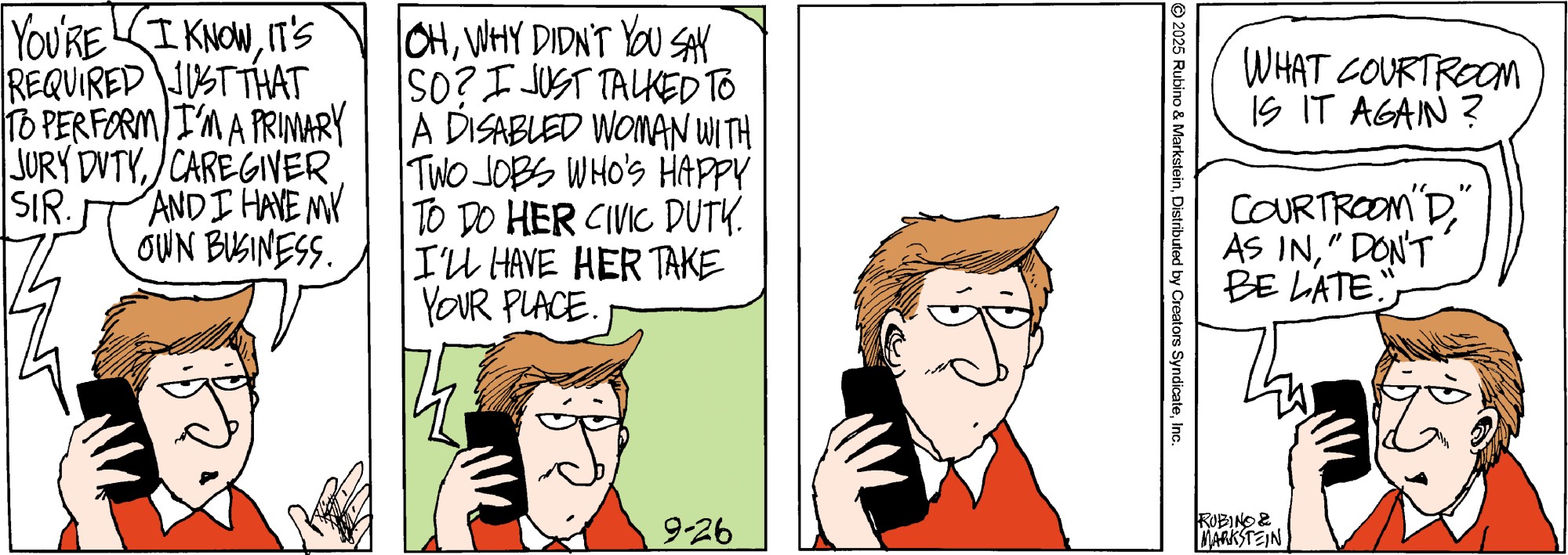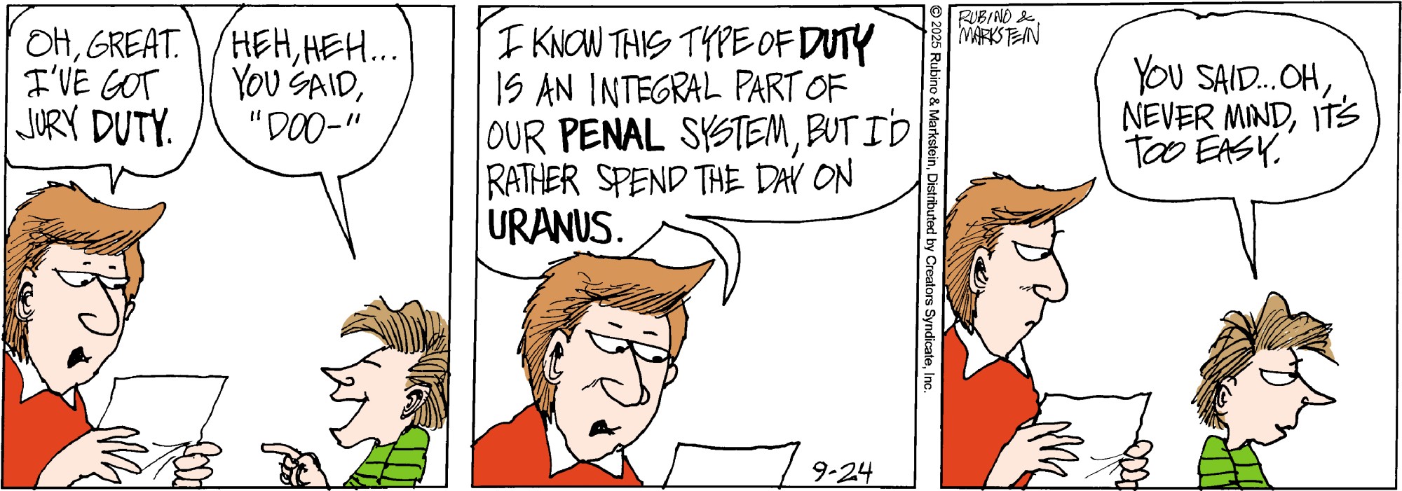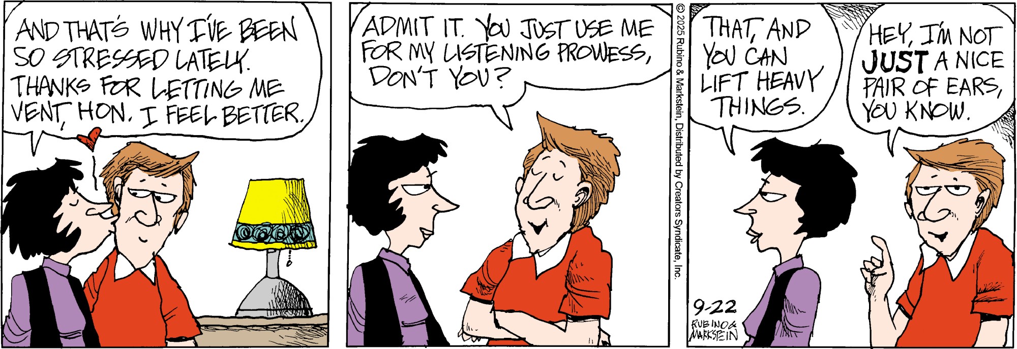"Daddy’s Home" is a contemporary family comic with an emphasis on the role of the modern father. No other cartoon feature examines domesticity from this uniquely male perspective while remaining universally appealing to both genders. Through the eyes of a stay-at-home-dad, "Daddy’s Home" casts a unique light on everyday situations. With biting sarcasm and sharp wit, Peter and a cast of supporting characters navigate the turbulent waters of modern family life. Creators Syndicate