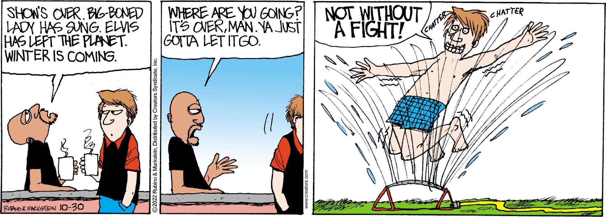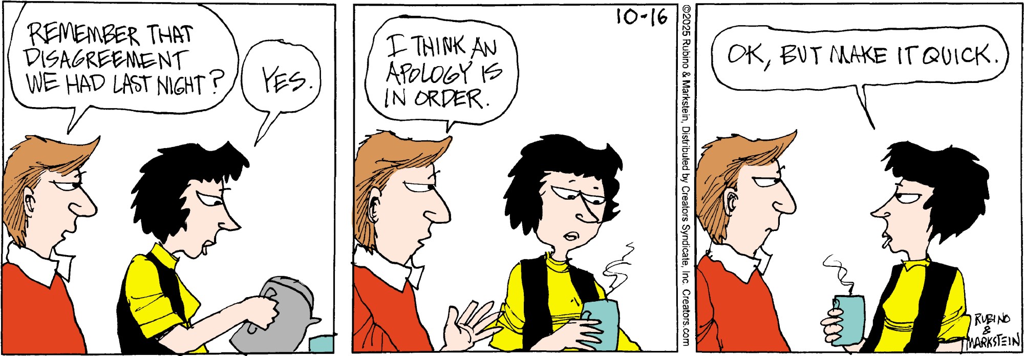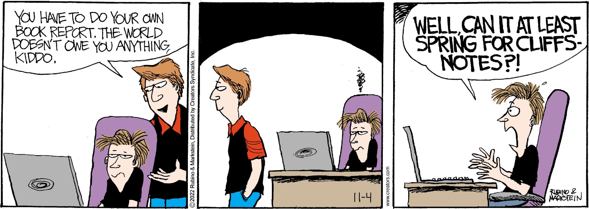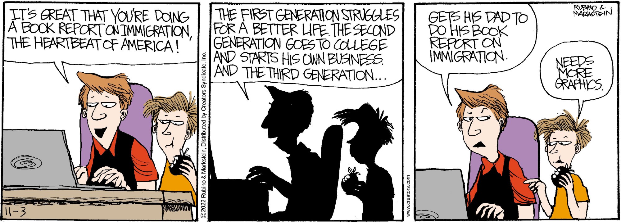 "Daddy’s Home" is a contemporary family comic with an emphasis on the role of the modern father. No other cartoon feature examines domesticity from this uniquely male perspective while remaining universally appealing to both genders. Through the eyes of a stay-at-home-dad, "Daddy’s Home" casts a unique light on everyday situations. With biting sarcasm and sharp wit, Peter and a cast of supporting characters navigate the turbulent waters of modern family life. Creators Syndicate