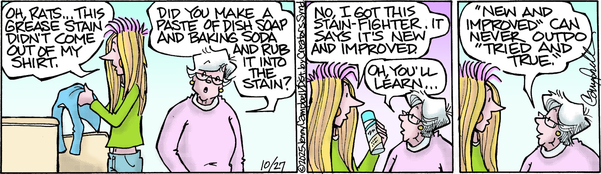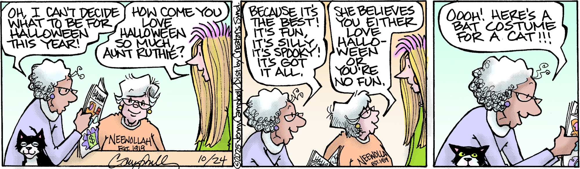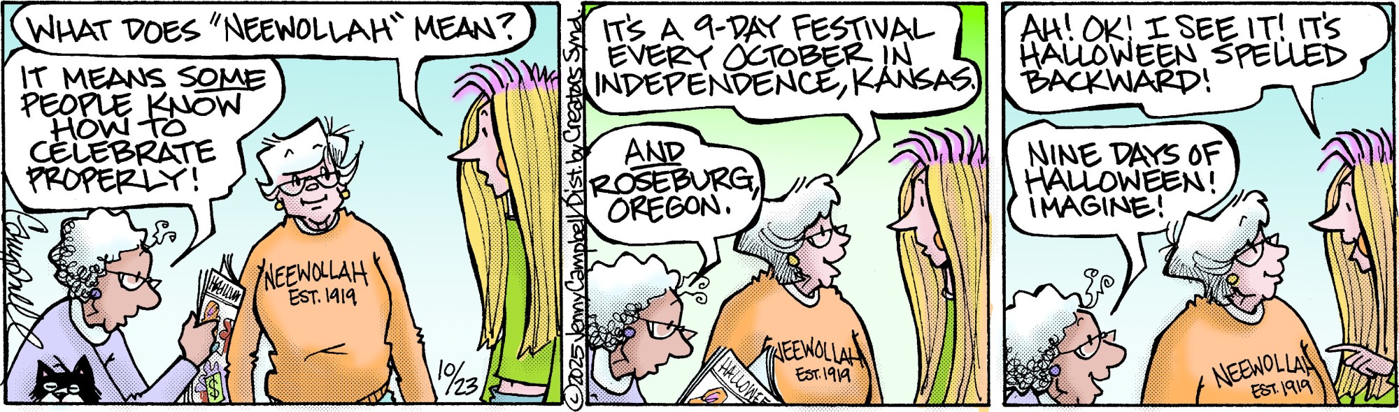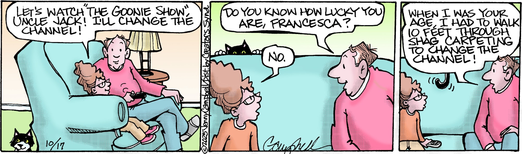 Cartoonist Jenny Campbell has created a spirited and intelligent look at aging and the generation gap. This strip features a group of older women and men dealing with the perils and perks of being old, the rules of chocolate, and the challenges of families. "Flo and Friends" is graceful, poignant, and full of humor. Creators Syndicate