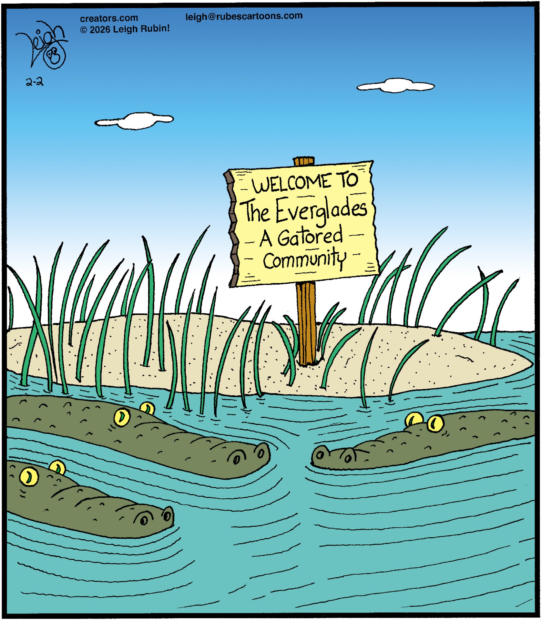 Talking cows, less-than-bright kids, and multiple varieties of flora and fauna make their appearance in the witty offbeat cartoon panel "Rubes" by Leigh Rubin. Rubin’s hilarious cast of characters and absurd view of the world have made "Rubes" a favorite with readers everywhere. Creators Syndicate