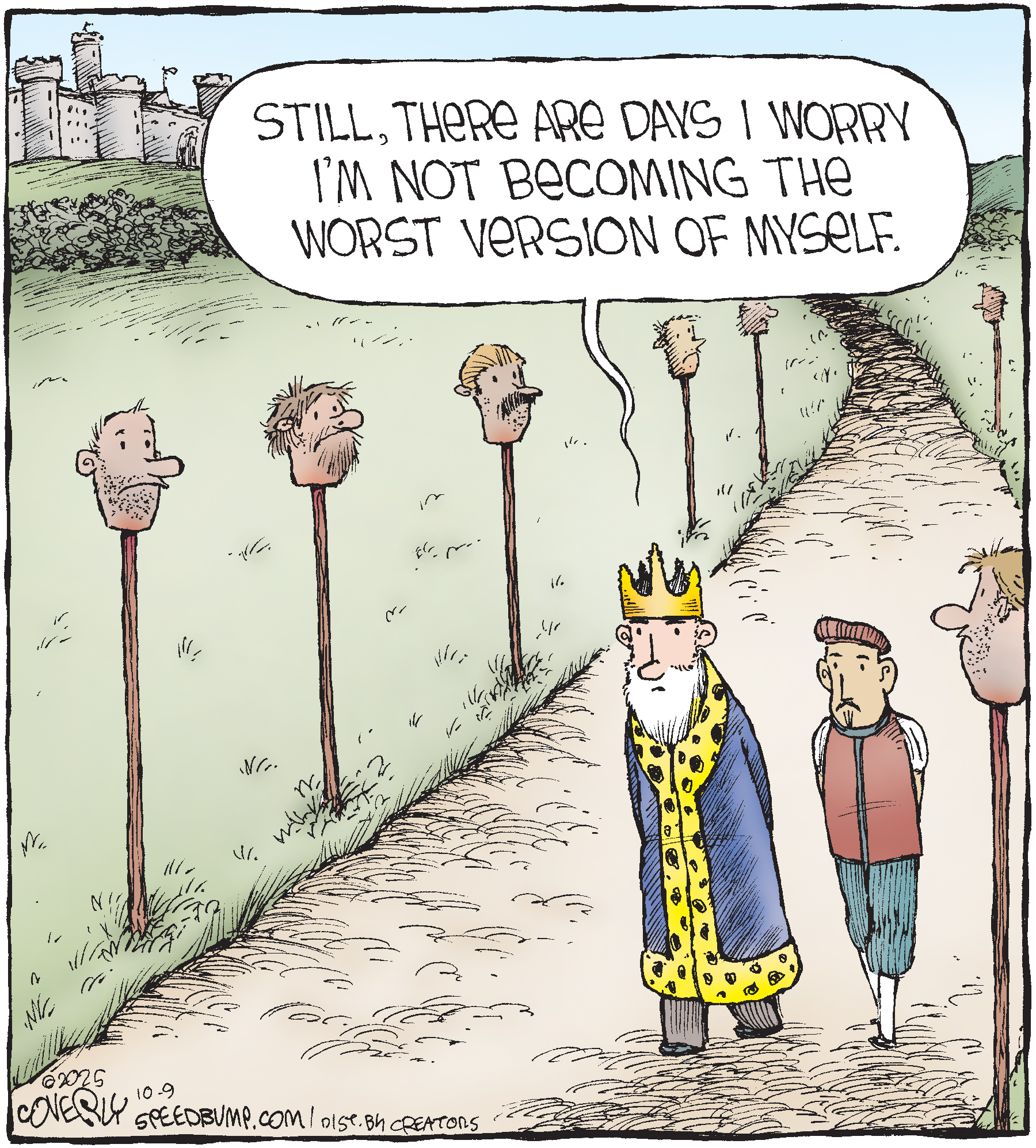 Dave Coverly admits there is no overriding theme, no tidy little philosophy that precisely describes what "Speed Bump" is about. "Basically," he says, "if life were a movie, these would be the outtakes." Creators Syndicate