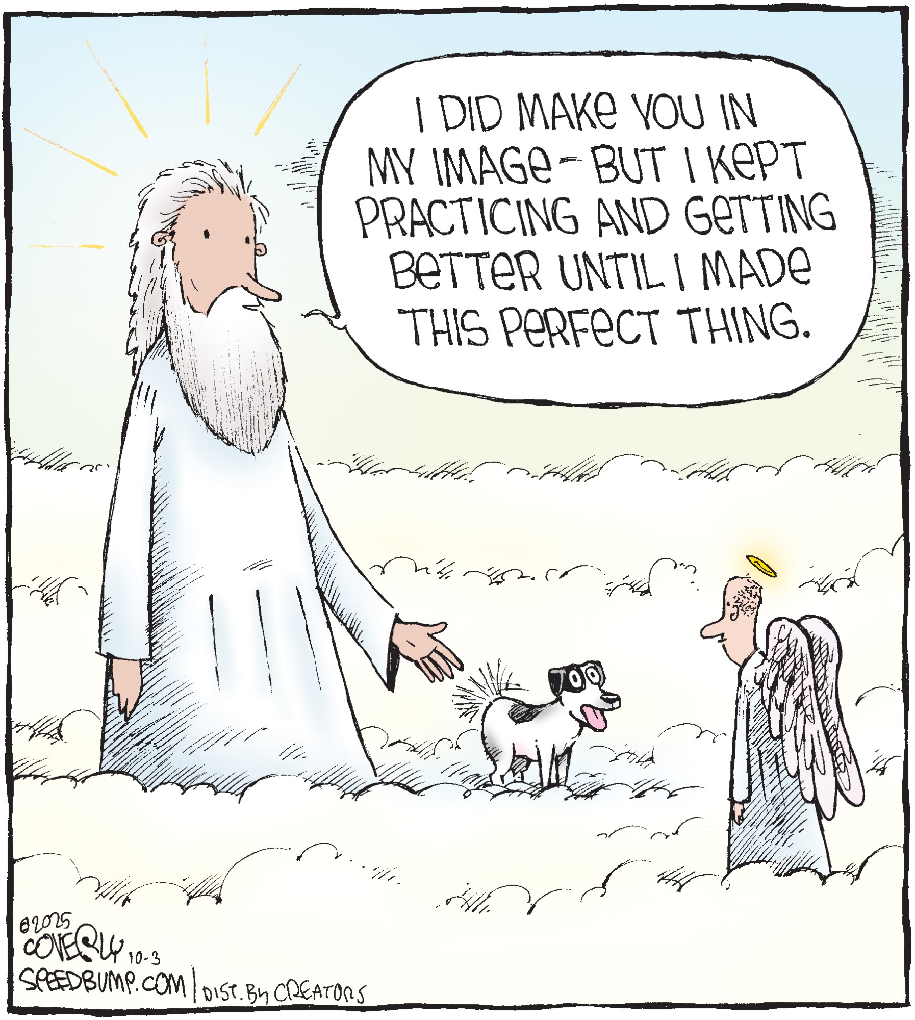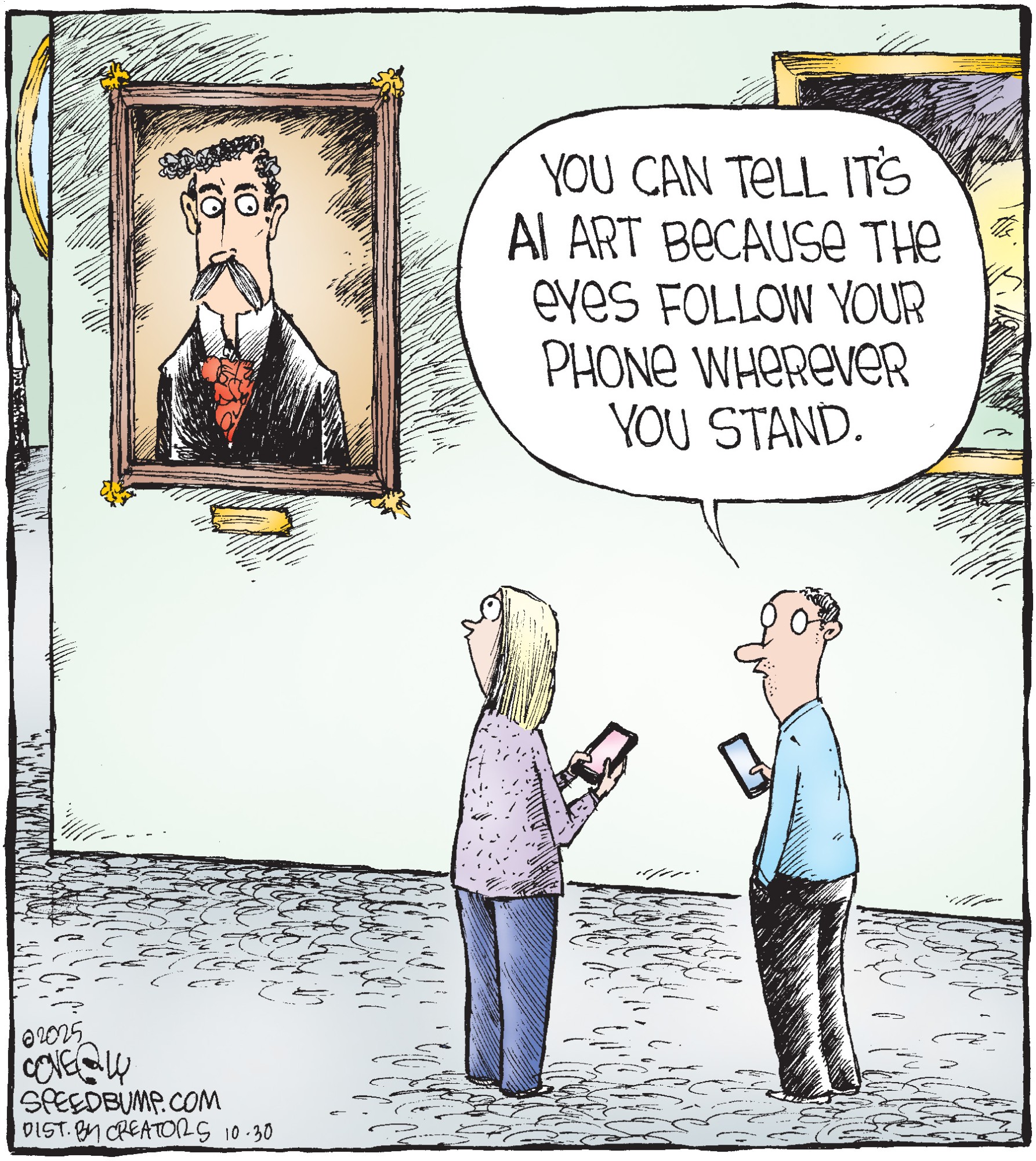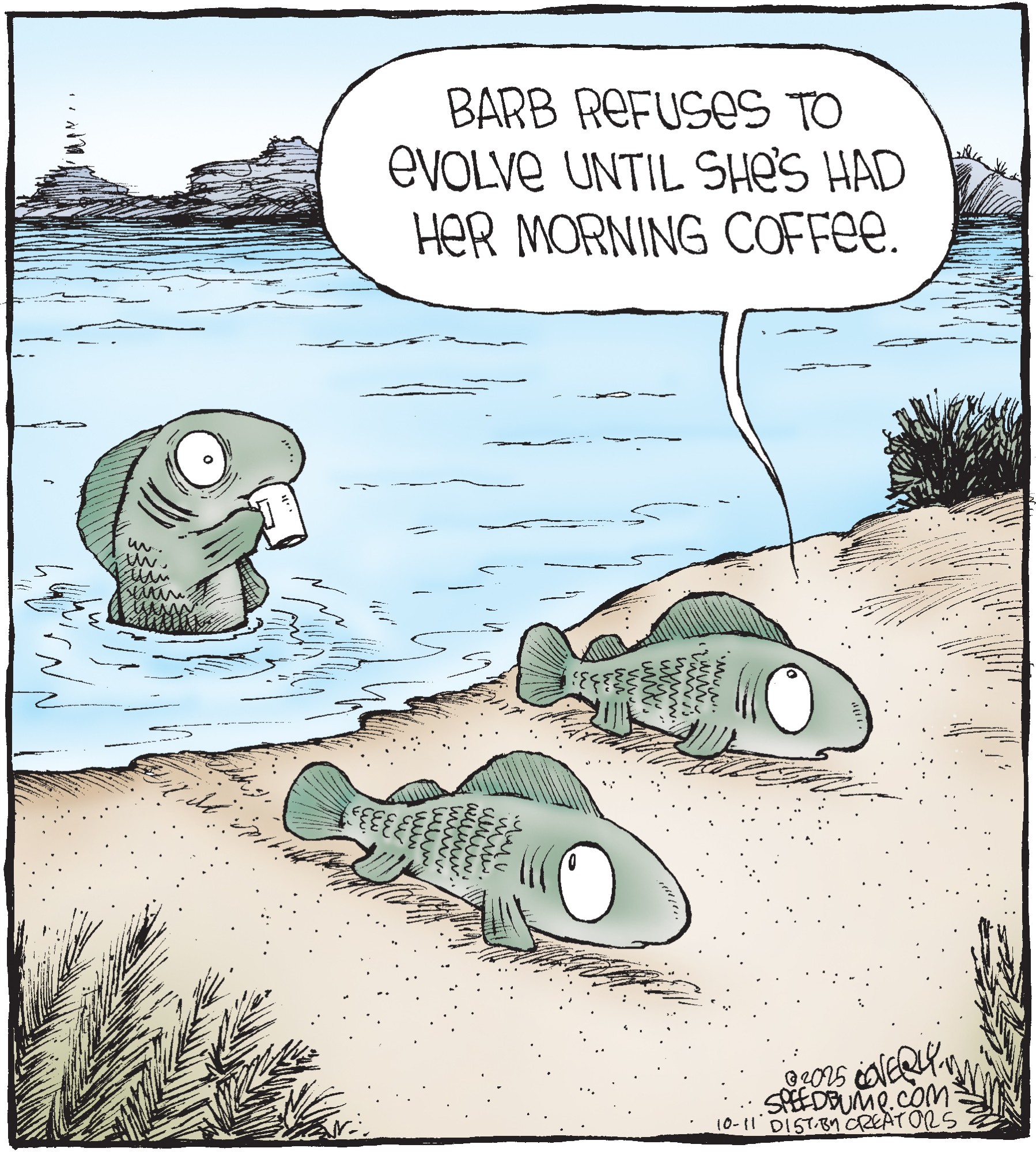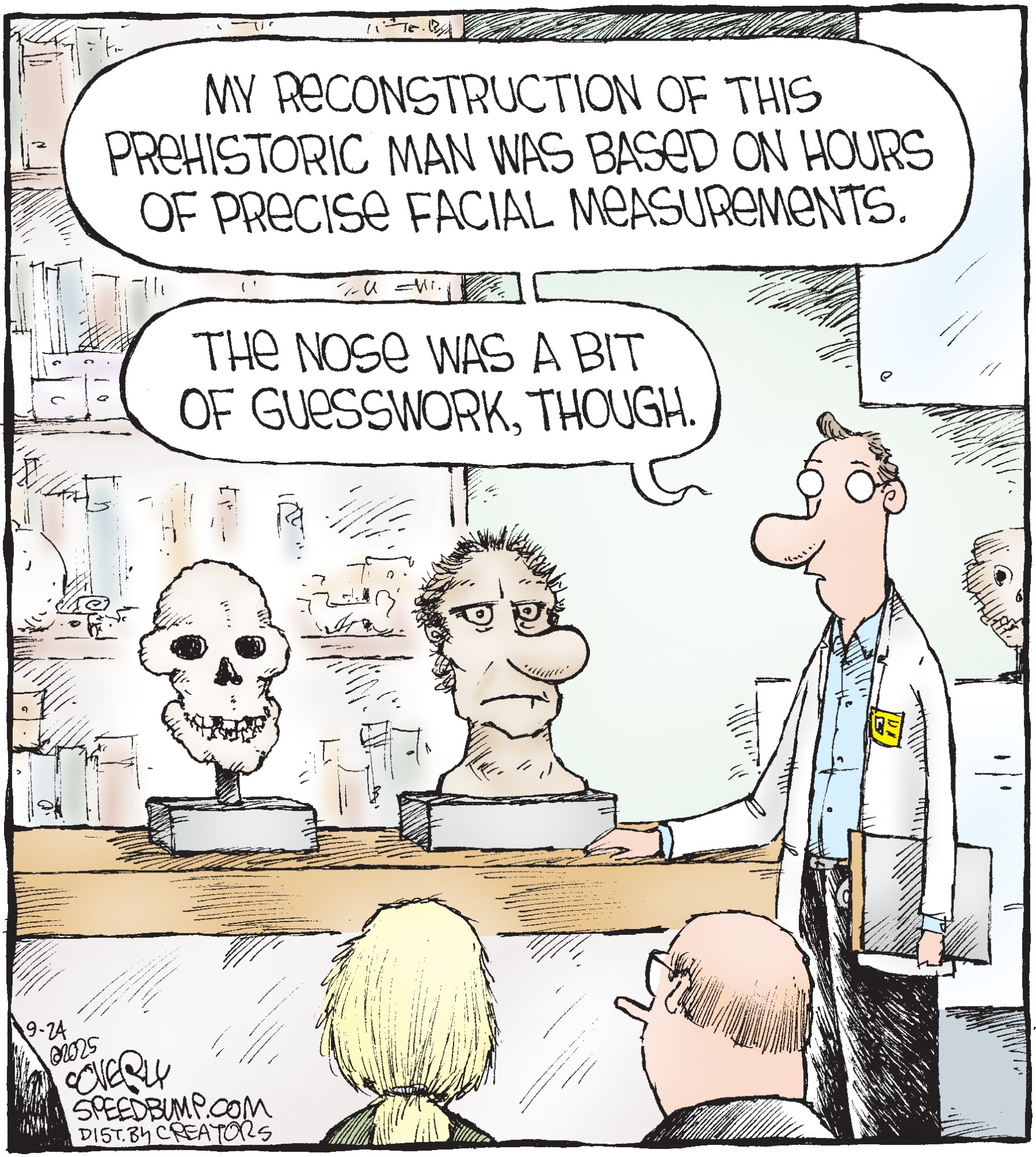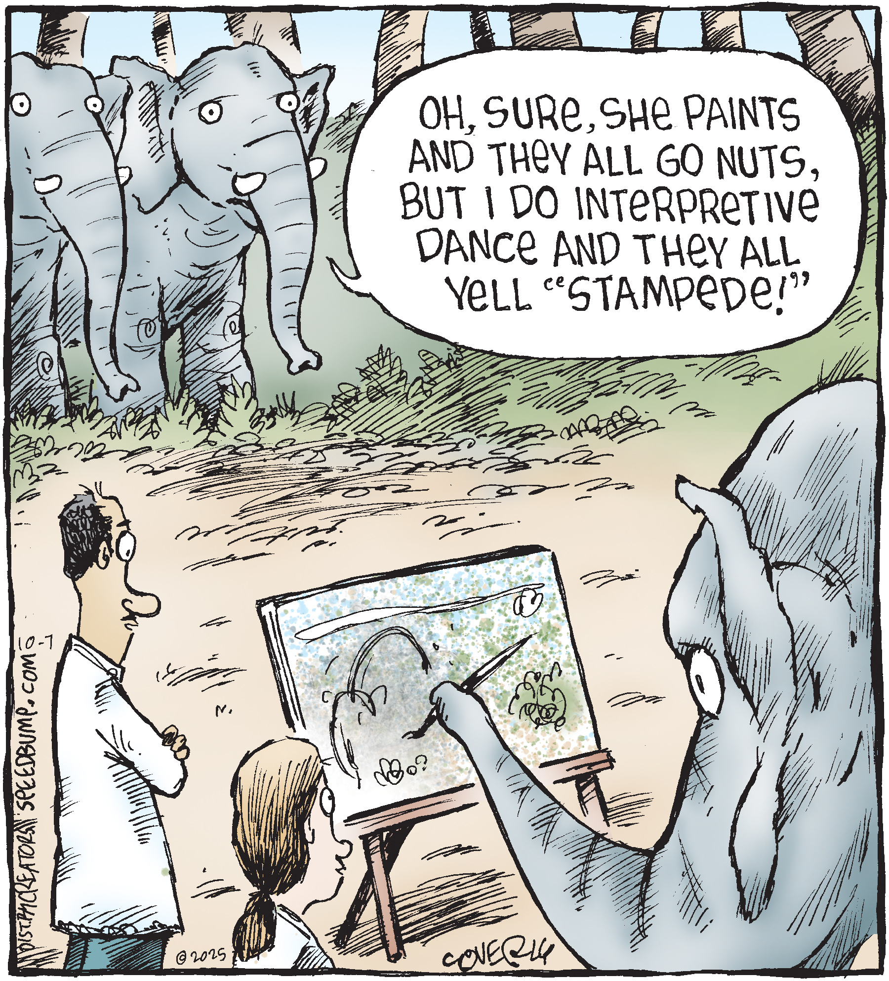 Dave Coverly admits there is no overriding theme, no tidy little philosophy that precisely describes what "Speed Bump" is about. "Basically," he says, "if life were a movie, these would be the outtakes." Creators Syndicate