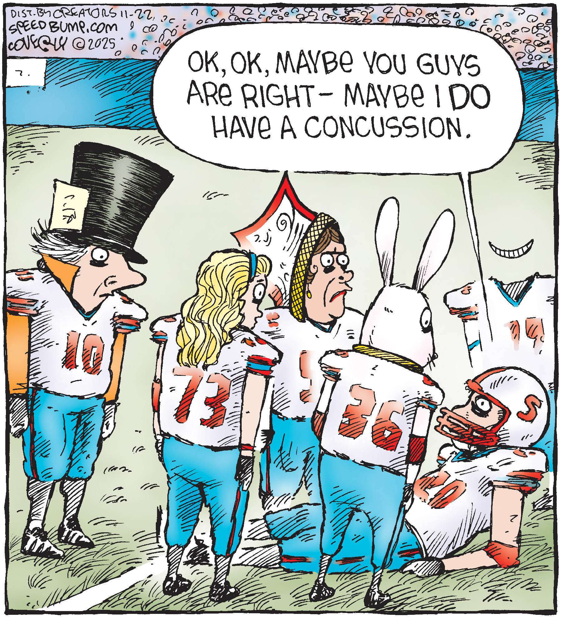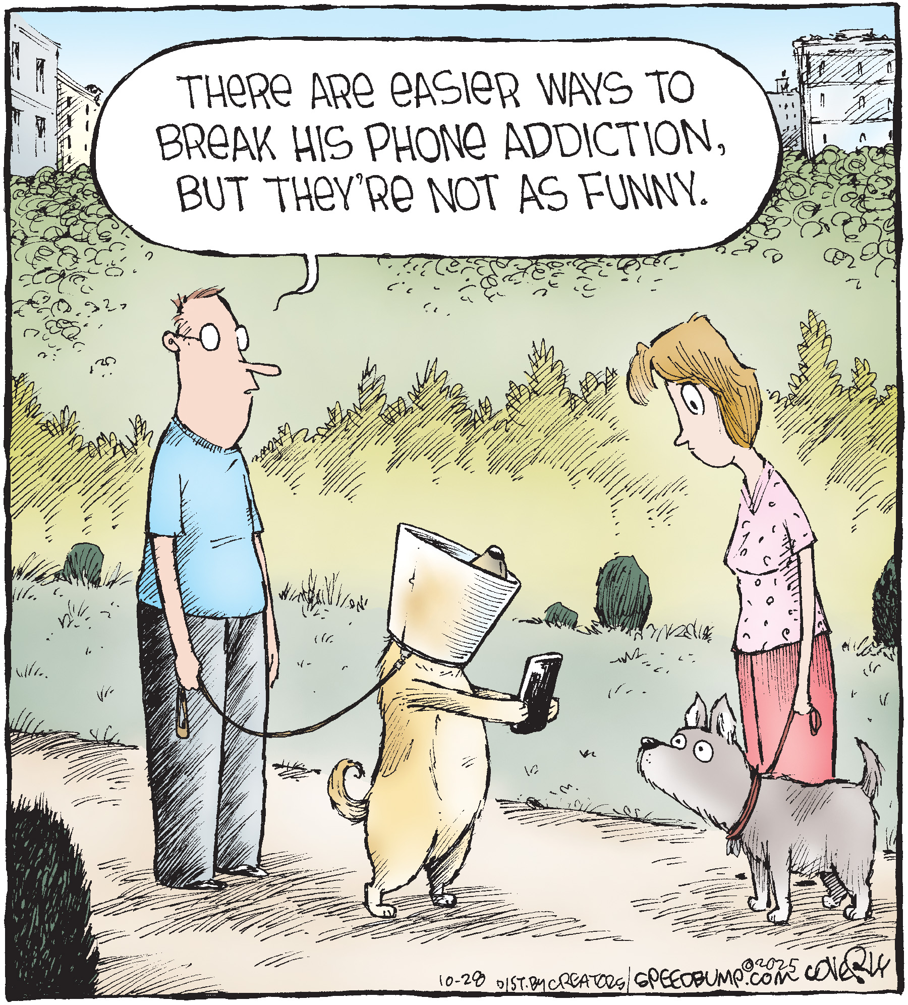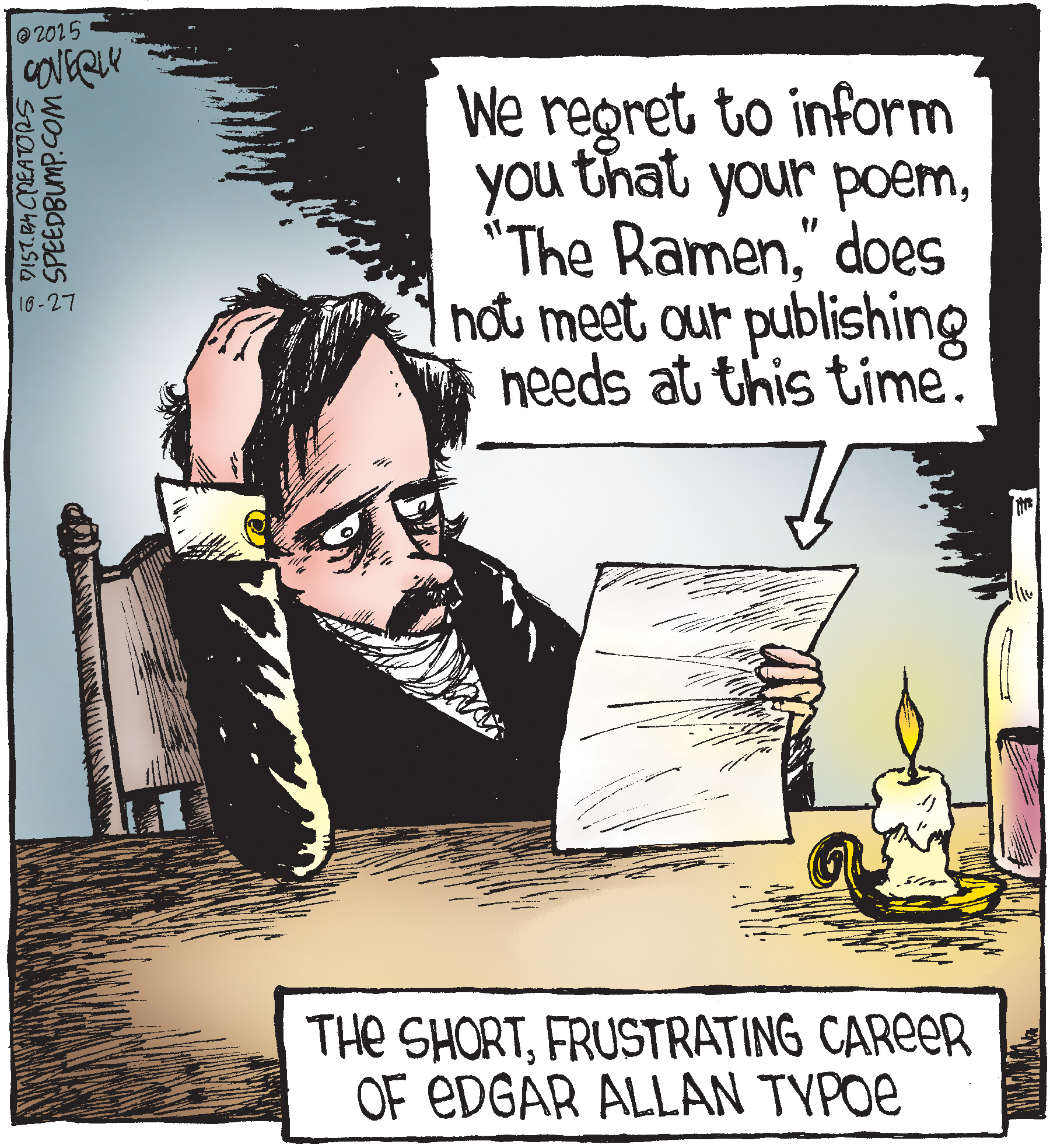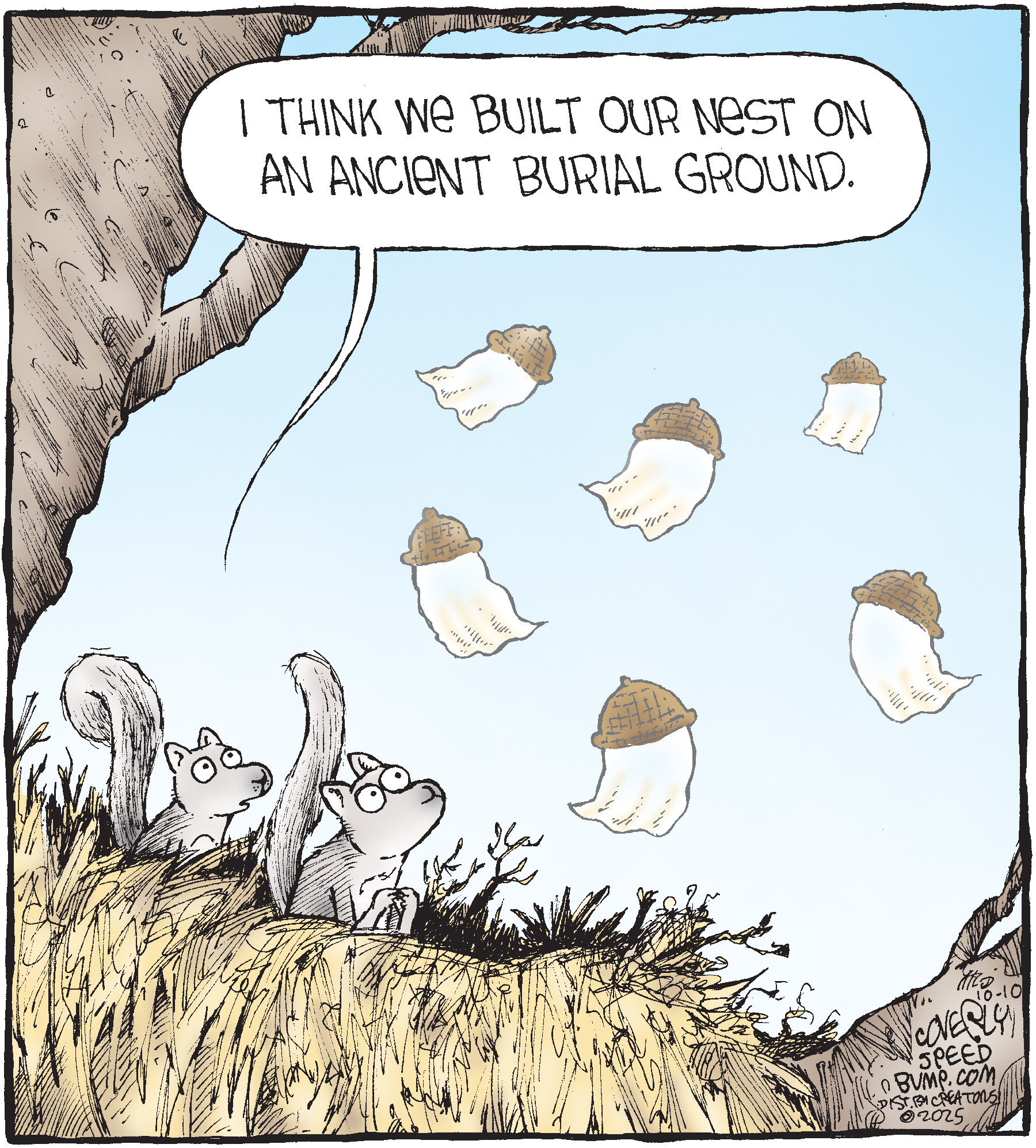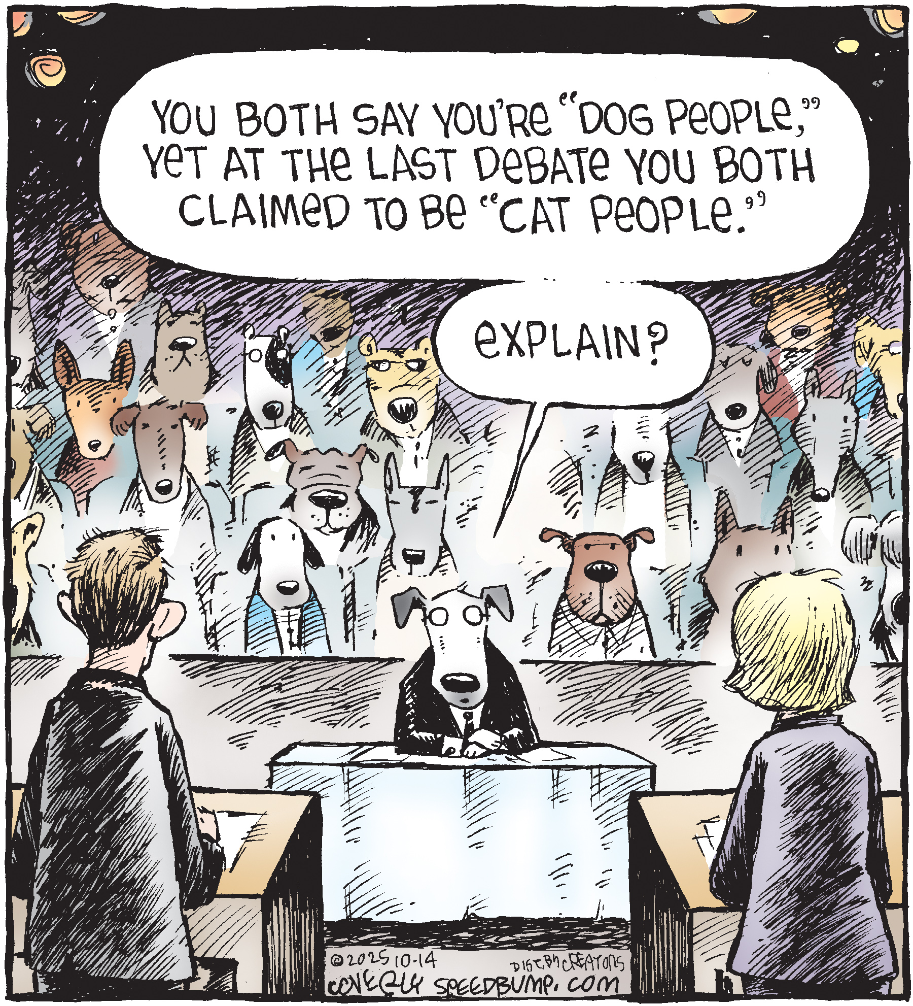 Dave Coverly admits there is no overriding theme, no tidy little philosophy that precisely describes what "Speed Bump" is about. "Basically," he says, "if life were a movie, these would be the outtakes." Creators Syndicate