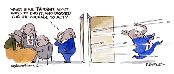 Pat Byrnes is a long-time cartoonist for The New Yorker, illustrator, humorist, and winner of the National Cartoonist Society’s Silver Reuben. Previous careers include voice actor, ad copywriter, and aerospace engineer. Cagle Cartoons