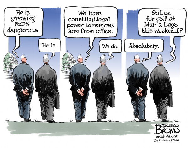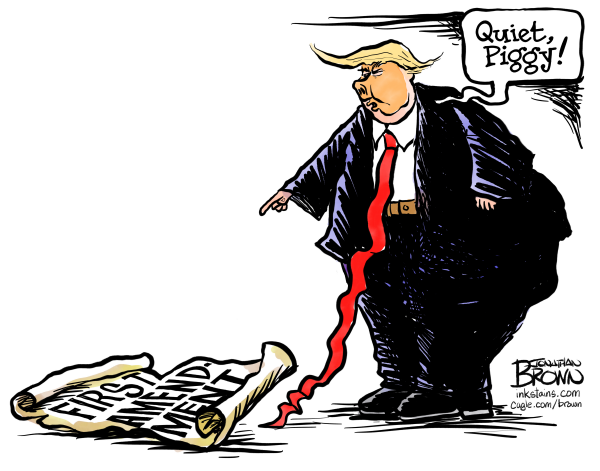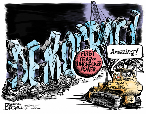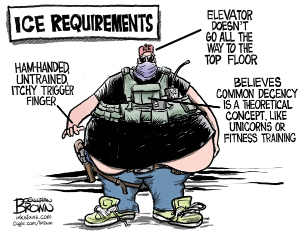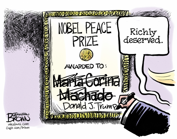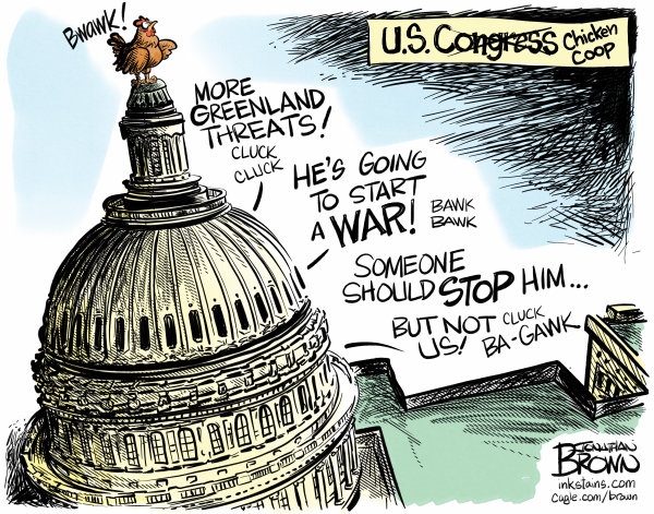 Jonathan Brown was the editorial cartoonist for the Deseret News in Salt Lake City, for many years, winning many awards. He became a freelance cartoonist, drawing for scores of clients and he created the comic strip “Analog,” which follows roommates Bradley, a human, and Nigel, a dog who identifies as a cat, as they navigate life in the digital era. Cagle Cartoons