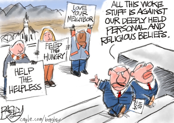 Pat Bagley is the staff cartoonist for The Salt Lake Tribune in Salt Lake City, Utah, and an author and illustrator of several books. His cartoons are syndicated nationally by Cagle Cartoons. Cagle Cartoons