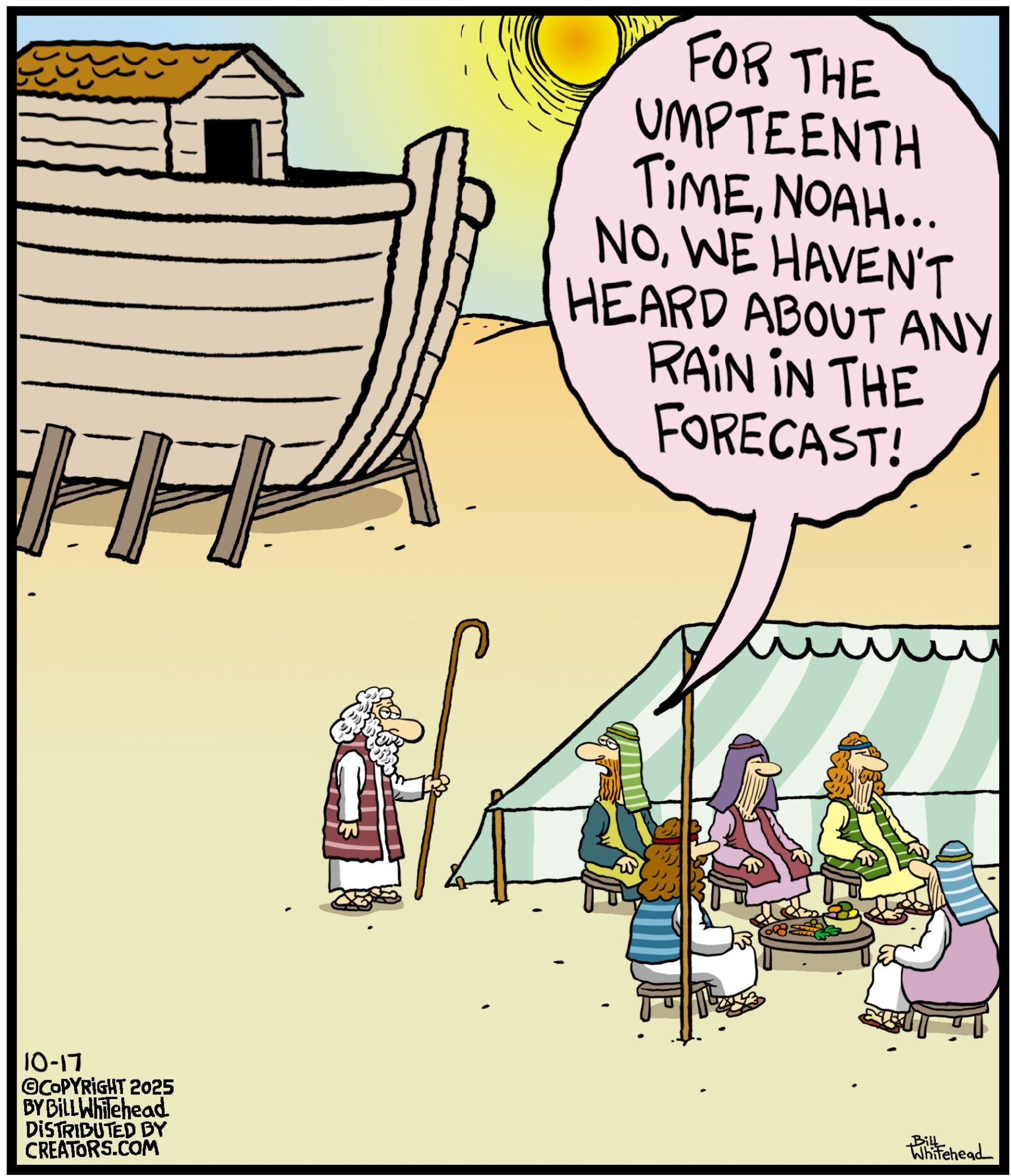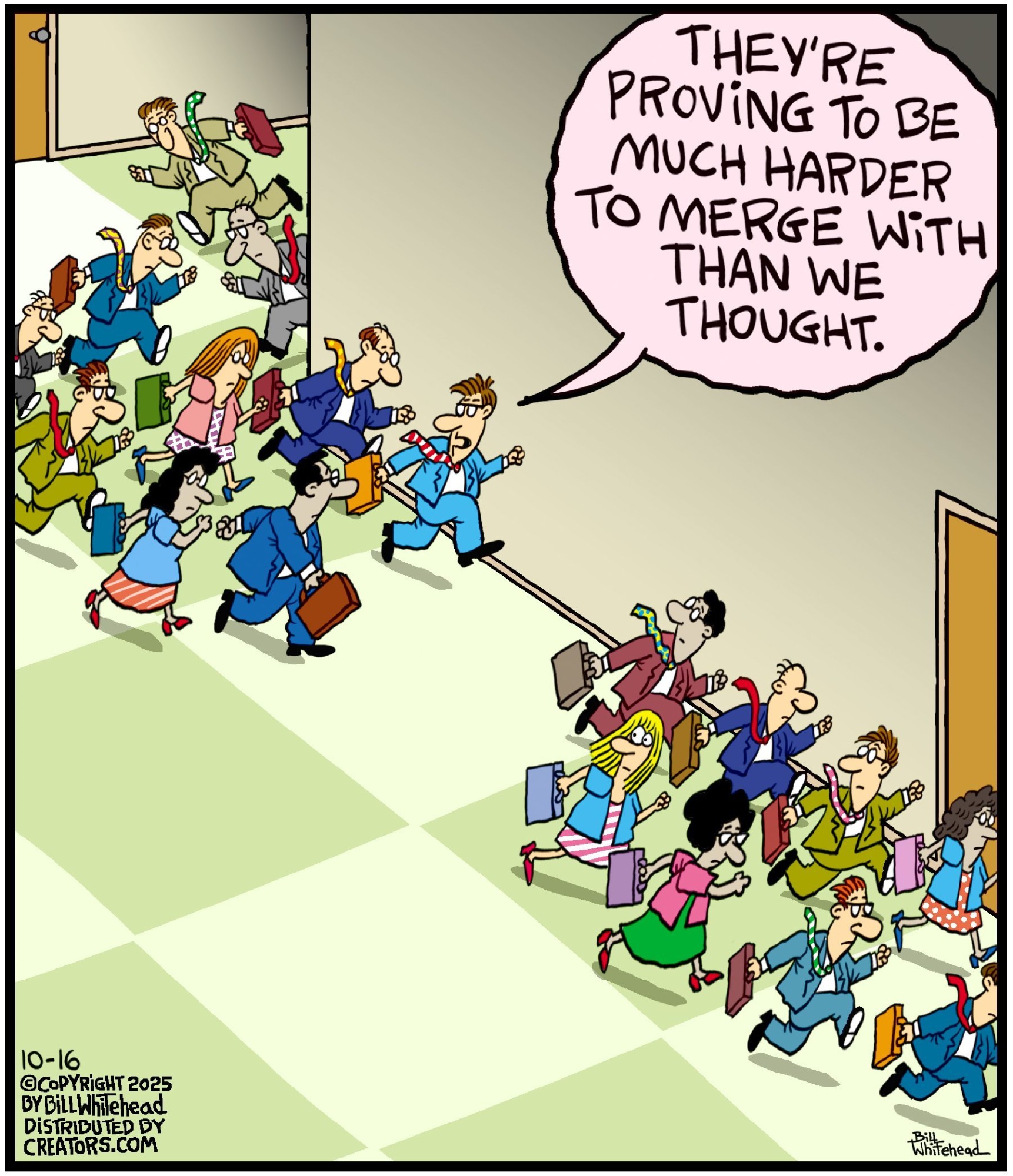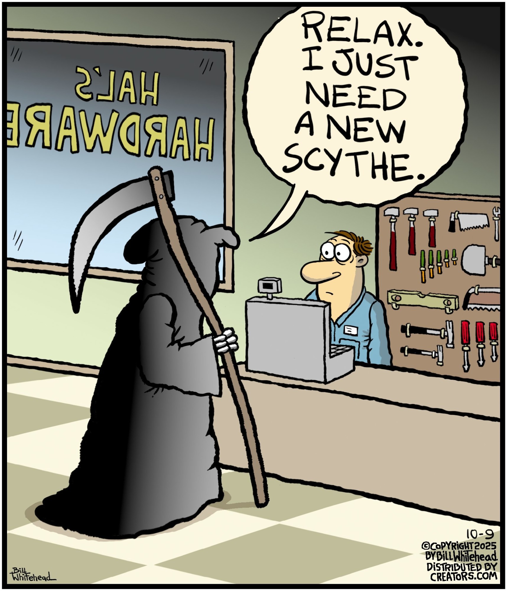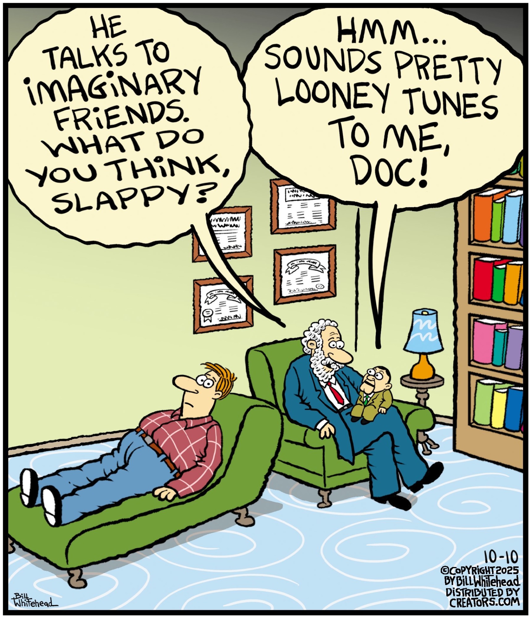 Bill’s career in cartooning started in the fifth grade, when he would copy drawings from comic strips, the New Yorker magazine and editorial cartoons. After a while he developed his own style, focusing primarily on the drawing. He soon realized his characters would need something to do and say, so he gave them their own odd little world to live in. Soon everyone around him became fair game. By college, Bill was cartooning for the school paper. Later, he created posters for book and record stores and freelanced for the Saturday Evening Post, Advertising Age, the Boston Phoenix, Wall Street Journal and King Features. In the '80s, he syndicated Sidelines, a sports panel cartoon. Creators Syndicate