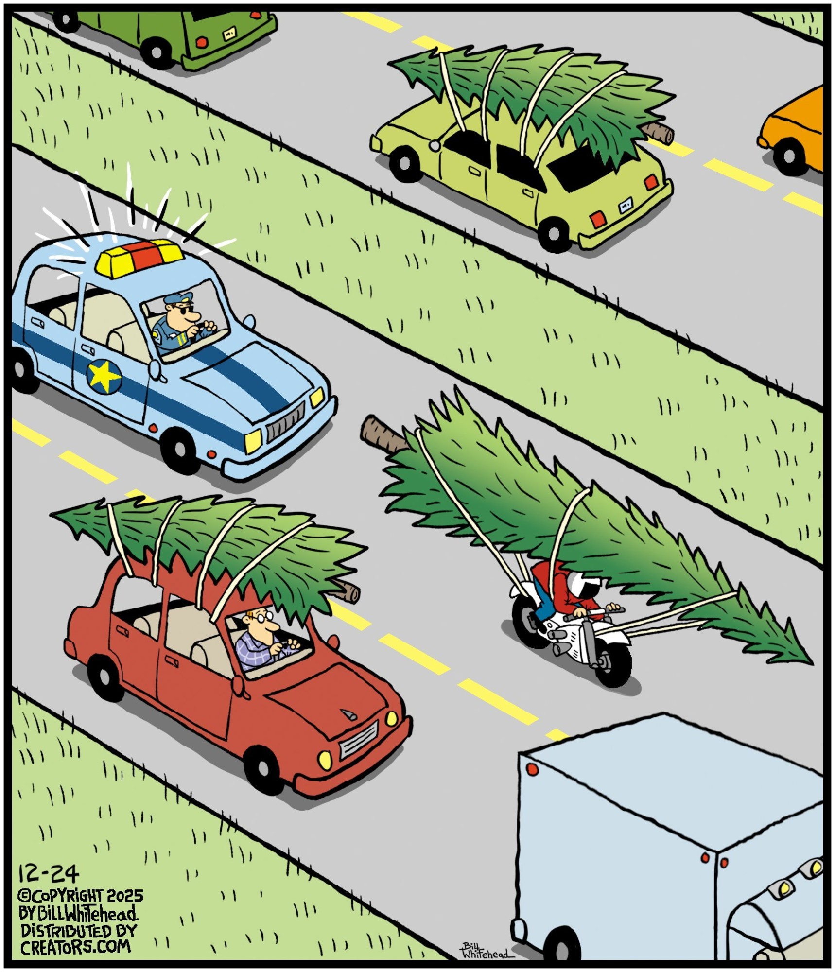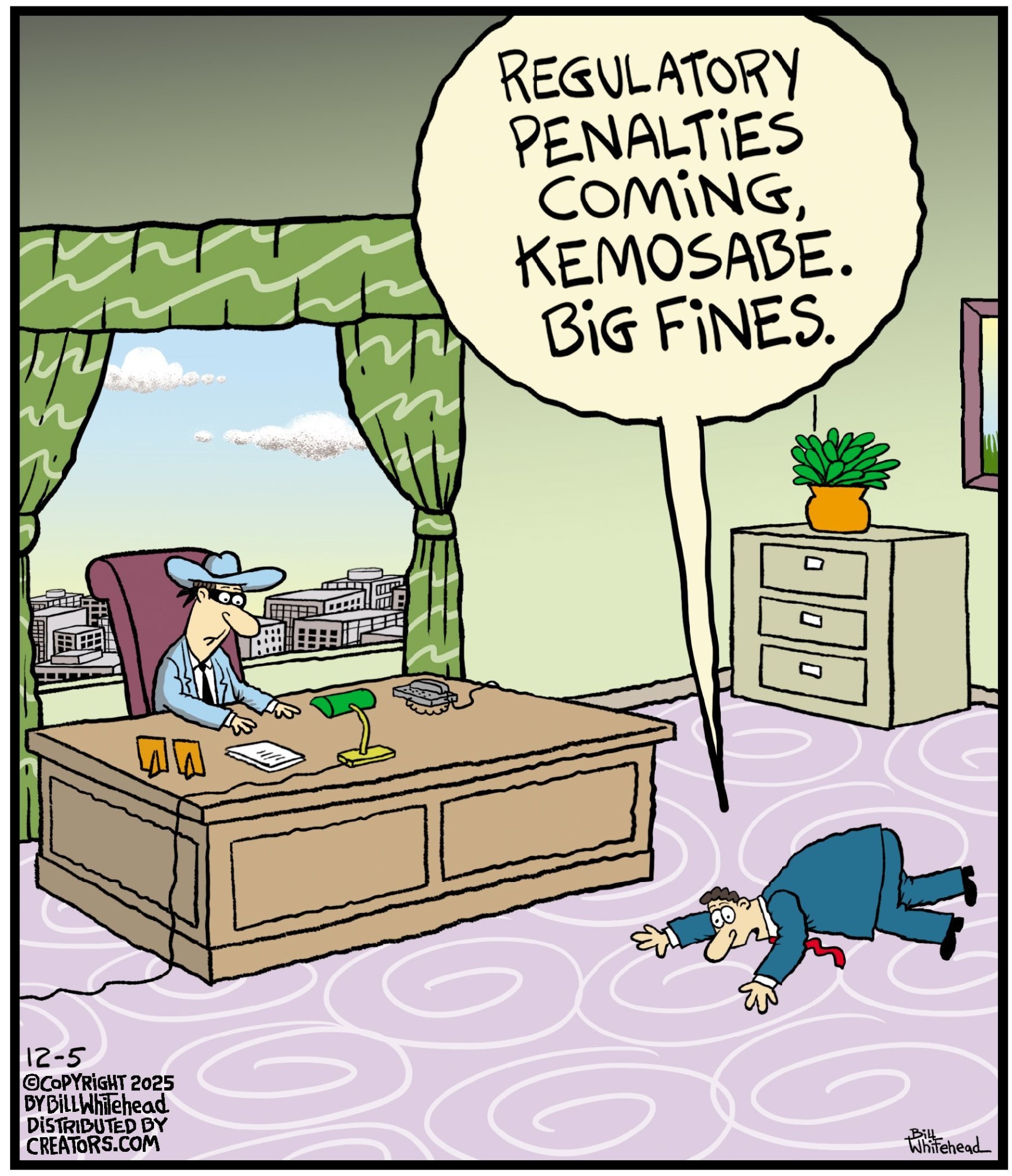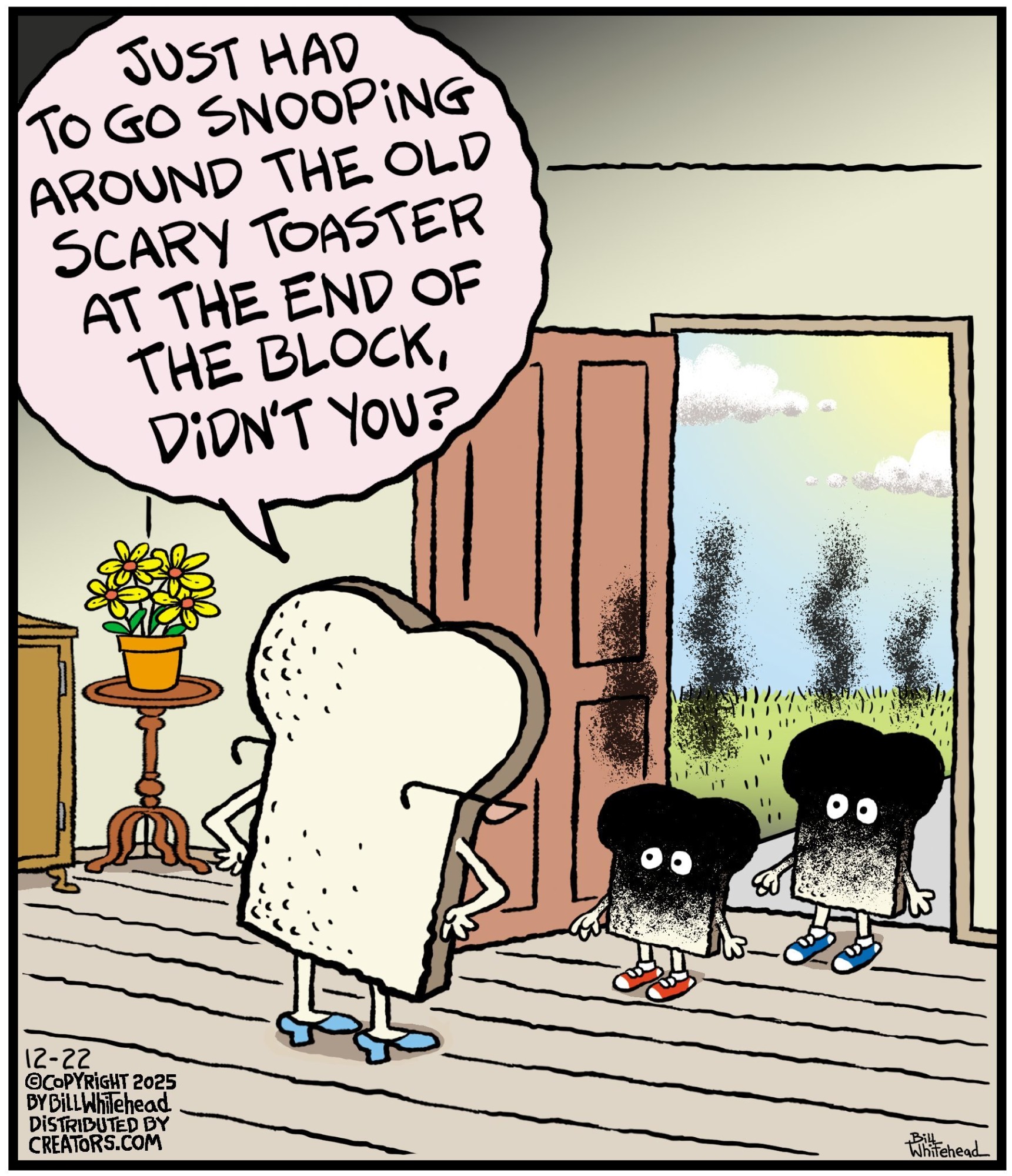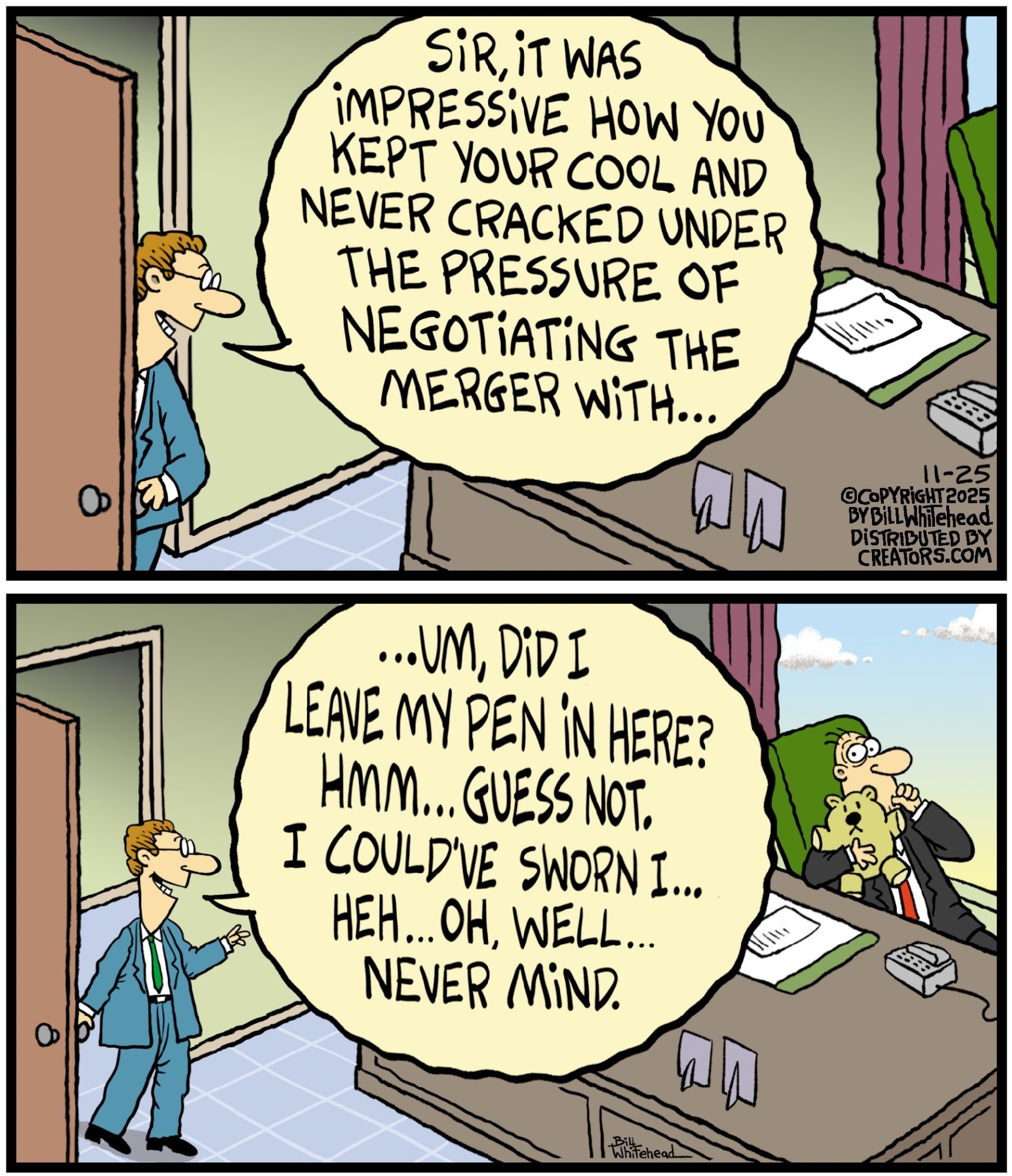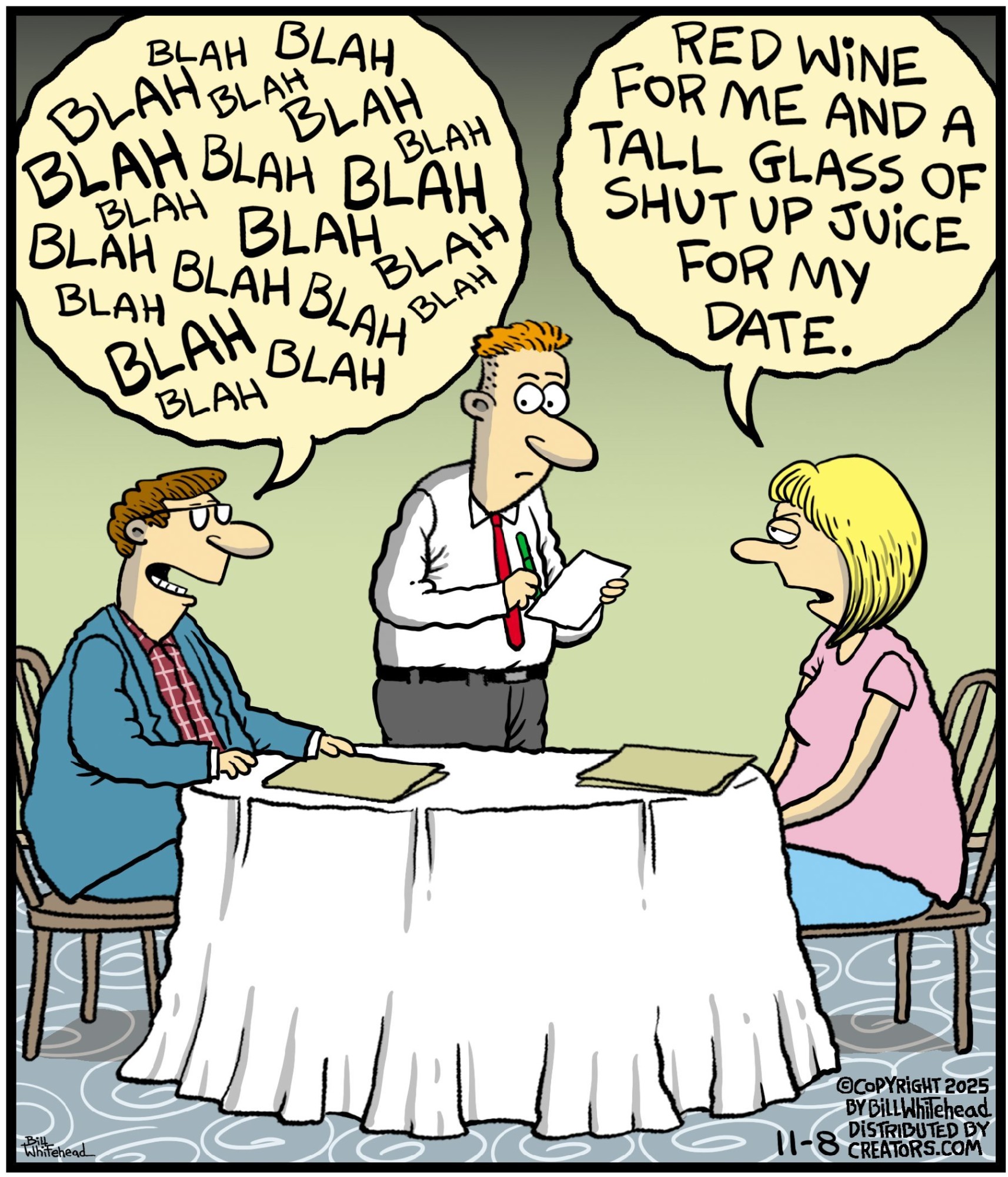 Bill’s career in cartooning started in the fifth grade, when he would copy drawings from comic strips, the New Yorker magazine and editorial cartoons. After a while he developed his own style, focusing primarily on the drawing. He soon realized his characters would need something to do and say, so he gave them their own odd little world to live in. Soon everyone around him became fair game. By college, Bill was cartooning for the school paper. Later, he created posters for book and record stores and freelanced for the Saturday Evening Post, Advertising Age, the Boston Phoenix, Wall Street Journal and King Features. In the '80s, he syndicated Sidelines, a sports panel cartoon. Creators Syndicate