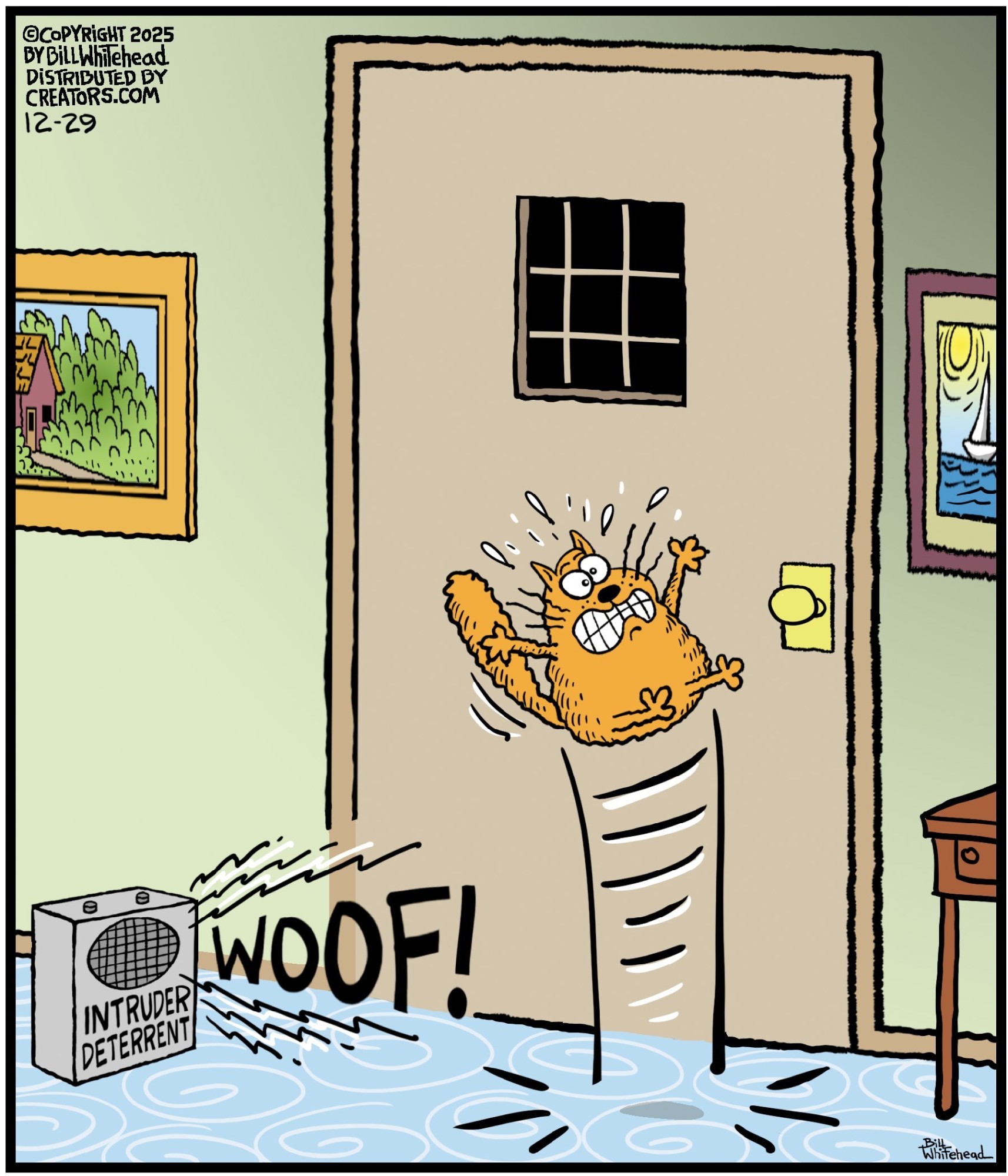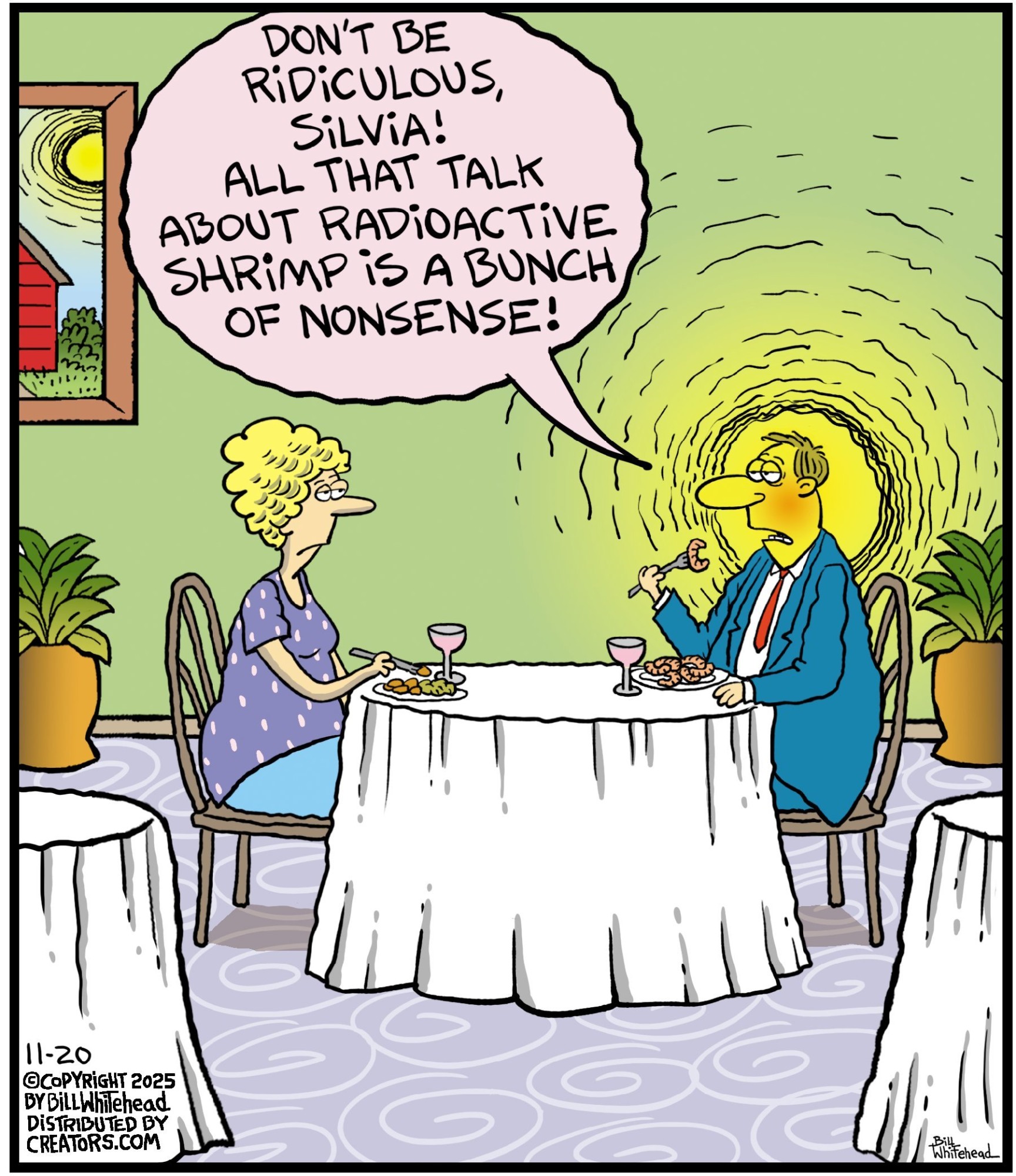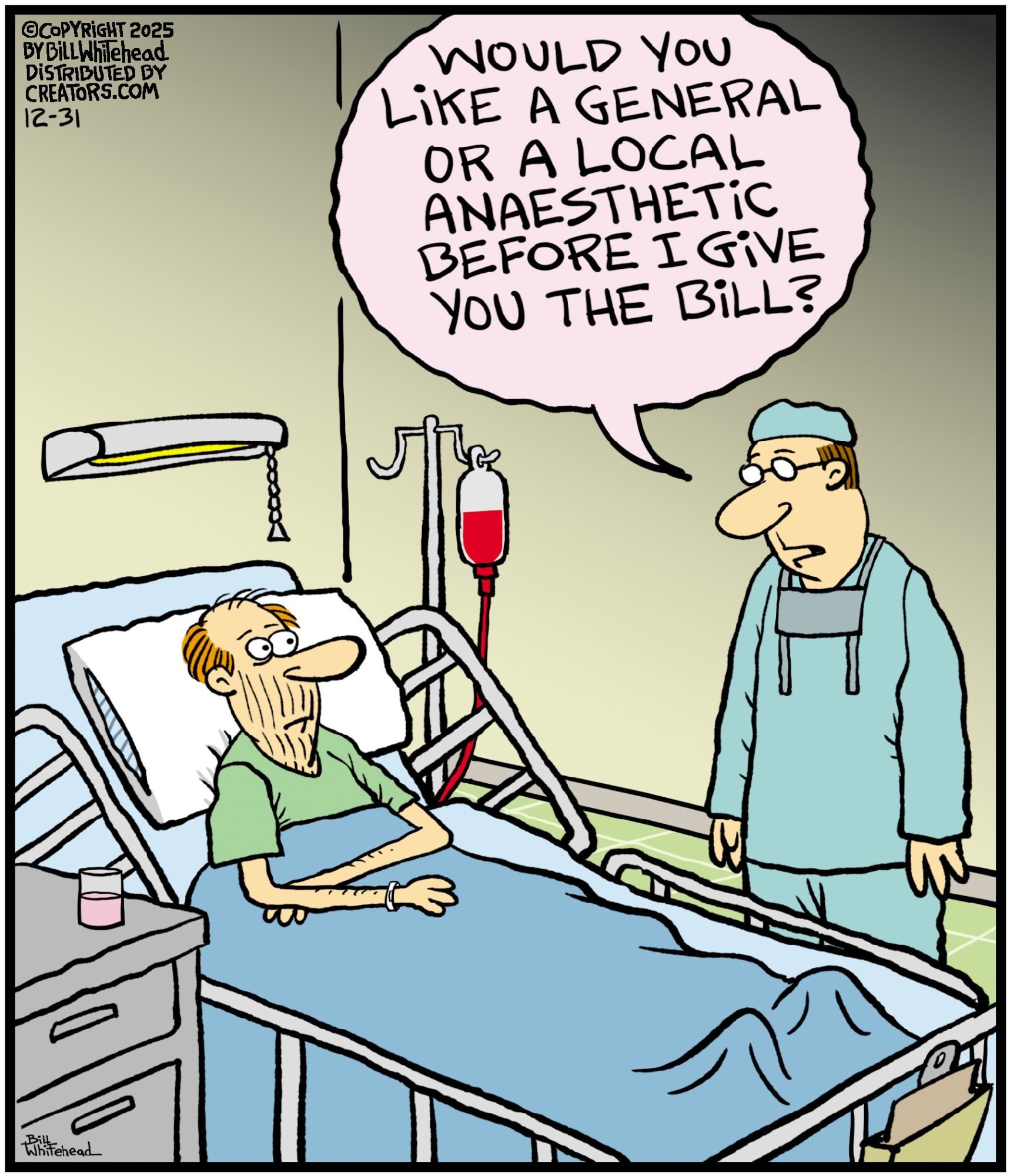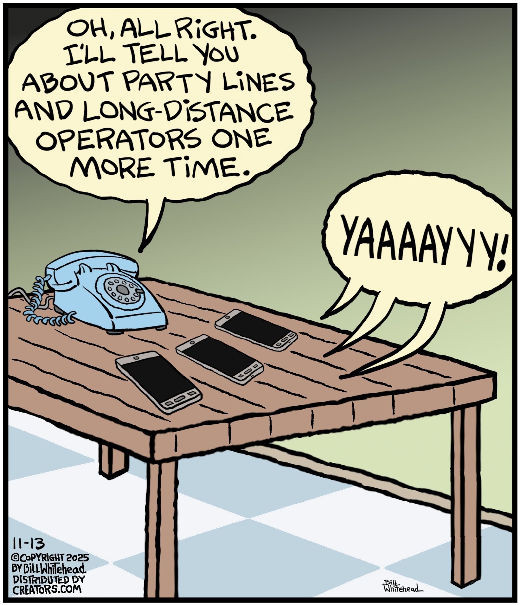 Bill’s career in cartooning started in the fifth grade, when he would copy drawings from comic strips, the New Yorker magazine and editorial cartoons. After a while he developed his own style, focusing primarily on the drawing. He soon realized his characters would need something to do and say, so he gave them their own odd little world to live in. Soon everyone around him became fair game. By college, Bill was cartooning for the school paper. Later, he created posters for book and record stores and freelanced for the Saturday Evening Post, Advertising Age, the Boston Phoenix, Wall Street Journal and King Features. In the '80s, he syndicated Sidelines, a sports panel cartoon. Creators Syndicate