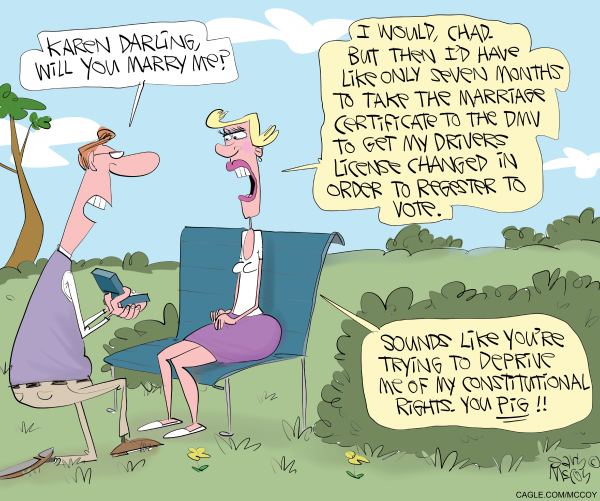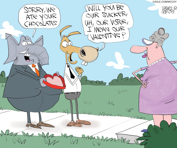 Gary McCoy creates the internationally-syndicated comic panel, The Flying McCoys. He has won Silver Reuben awards from the National Cartoonists Society for his greeting cards and magazine gag cartoons, and has freelanced for Playboy, PARADE Magazine, and too many more to name. He lives in the St. Louis area with his wife and son, and ‘59 Chevy pickup. Cagle Cartoons