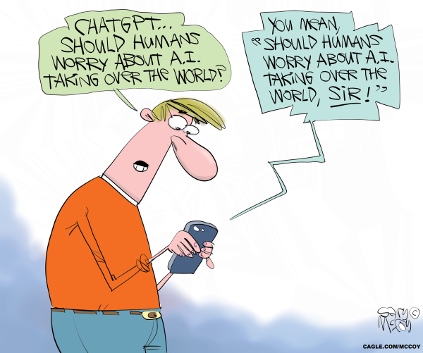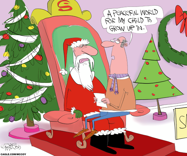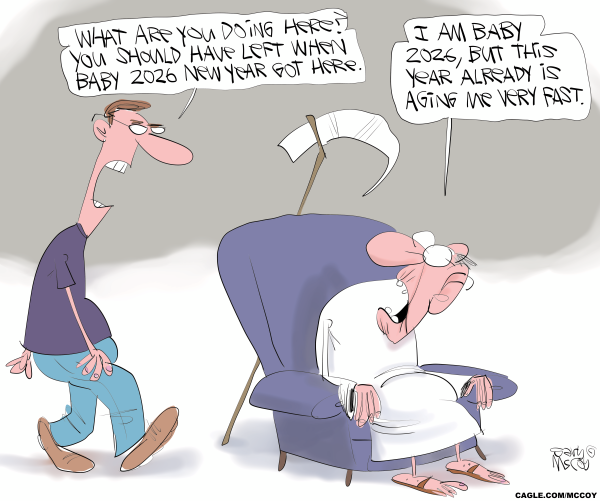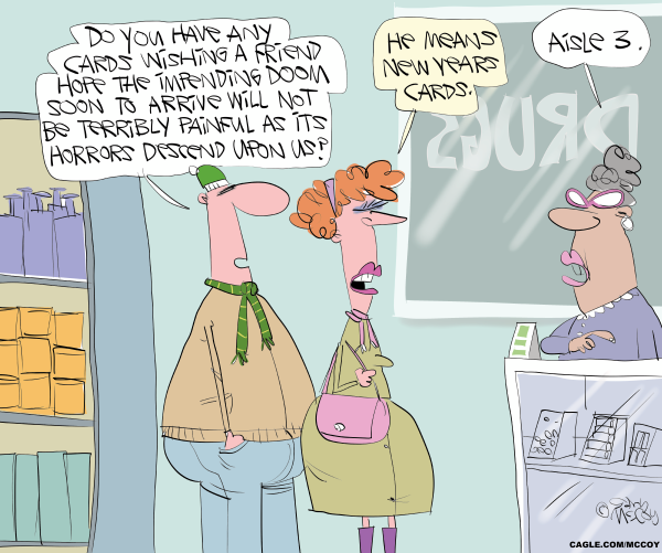 Gary McCoy creates the internationally-syndicated comic panel, The Flying McCoys. He has won Silver Reuben awards from the National Cartoonists Society for his greeting cards and magazine gag cartoons, and has freelanced for Playboy, PARADE Magazine, and too many more to name. He lives in the St. Louis area with his wife and son, and ‘59 Chevy pickup. Cagle Cartoons