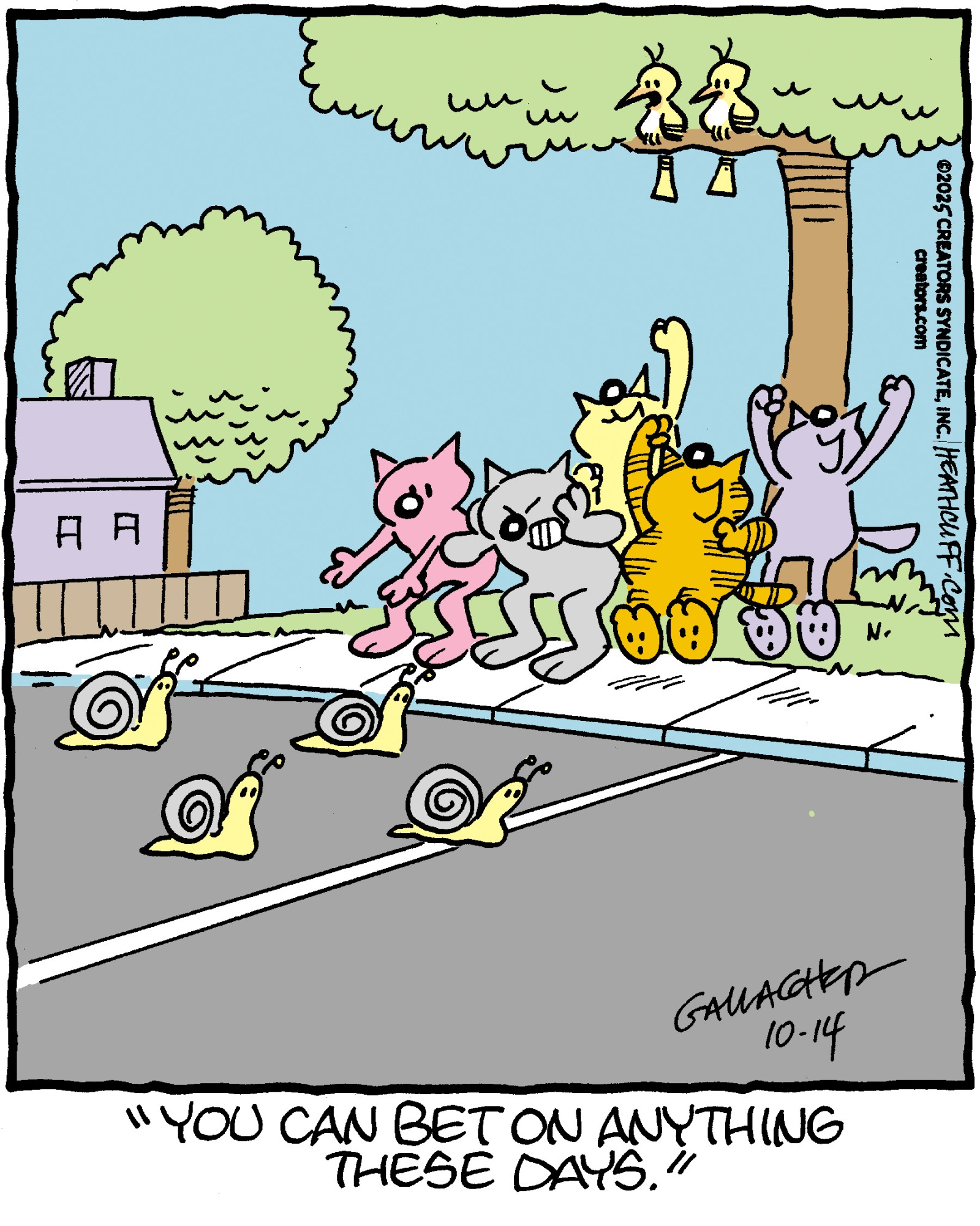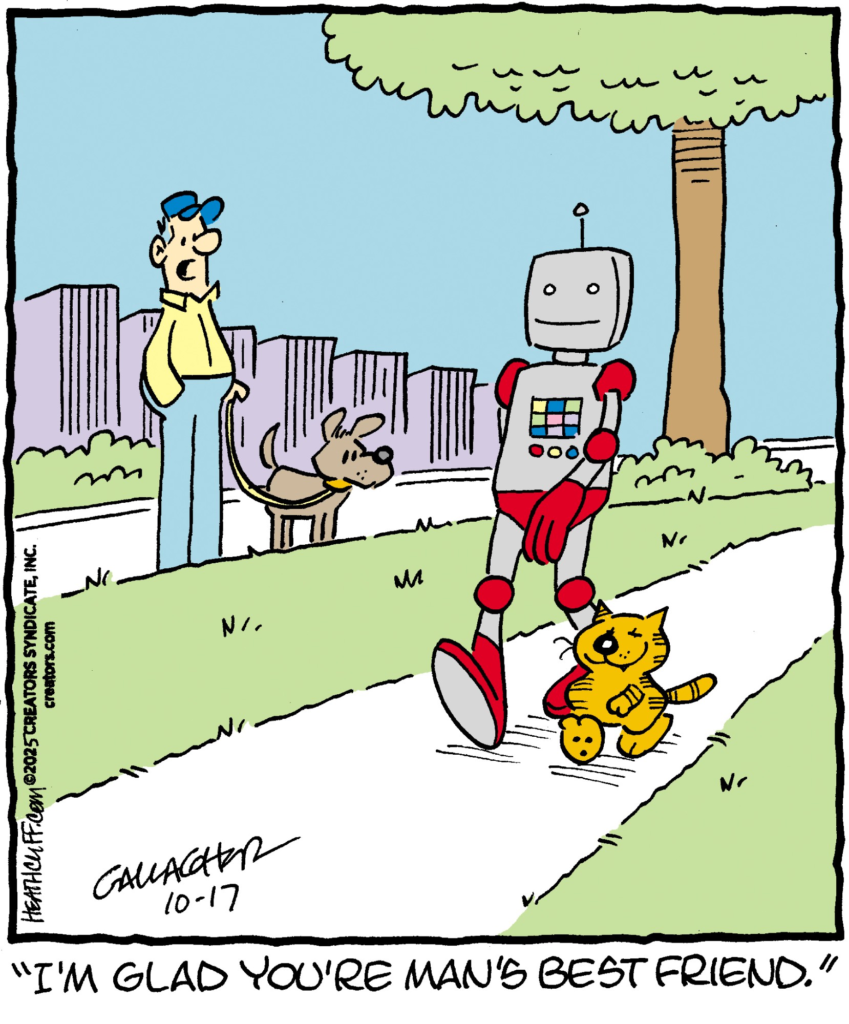 Peter Gallagher, a New Jersey native, has helmed the beloved comic strip "Heathcliff" since 1998. Raised in a large family where art and sports were central, Gallagher’s passion for drawing flourished alongside his musical pursuits as the lead singer of Holmes. He joined the "Heathcliff" team in 1994, succeeding his uncles as the sole writer and artist. Celebrated globally, "Heathcliff" appears in hundreds of newspapers and has been adapted into TV shows and movies. Gallagher also teaches illustration at Montclair State University. Creators Syndicate