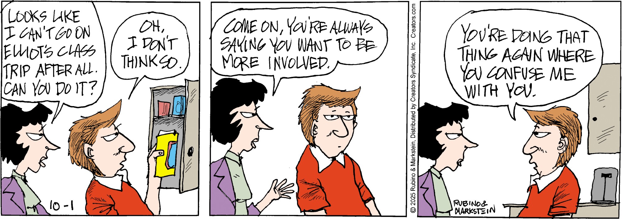 "Daddy’s Home" is a contemporary family comic with an emphasis on the role of the modern father. No other cartoon feature examines domesticity from this uniquely male perspective while remaining universally appealing to both genders. Through the eyes of a stay-at-home-dad, "Daddy’s Home" casts a unique light on everyday situations. With biting sarcasm and sharp wit, Peter and a cast of supporting characters navigate the turbulent waters of modern family life. Creators Syndicate