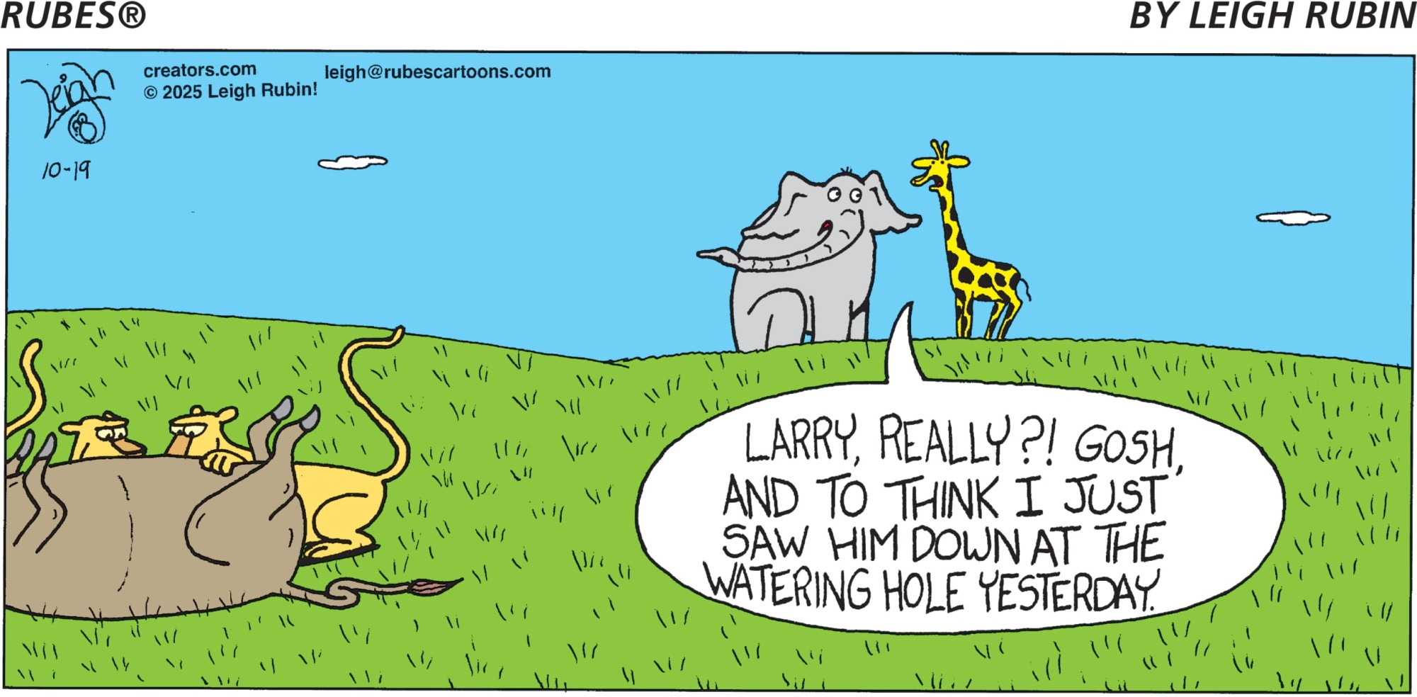 Talking cows, less-than-bright kids, and multiple varieties of flora and fauna make their appearance in the witty offbeat cartoon panel "Rubes" by Leigh Rubin. Rubin’s hilarious cast of characters and absurd view of the world have made "Rubes" a favorite with readers everywhere. Creators Syndicate