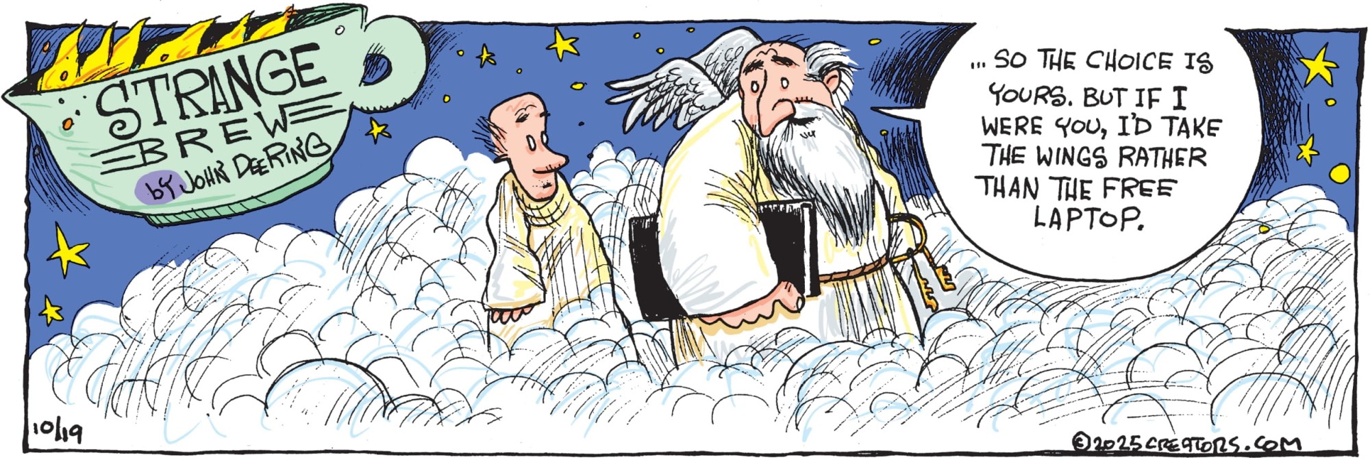 John Deering has started drawing cartoon panels, and the comic pages of our newspapers may never be the same. With "Strange Brew," Deering—famous for his biting humor and political savvy as chief editorial cartoonist for the Arkansas Democrat-Gazette—has an outlet for his creative sense of humor and quirky view of life. Creators Syndicate