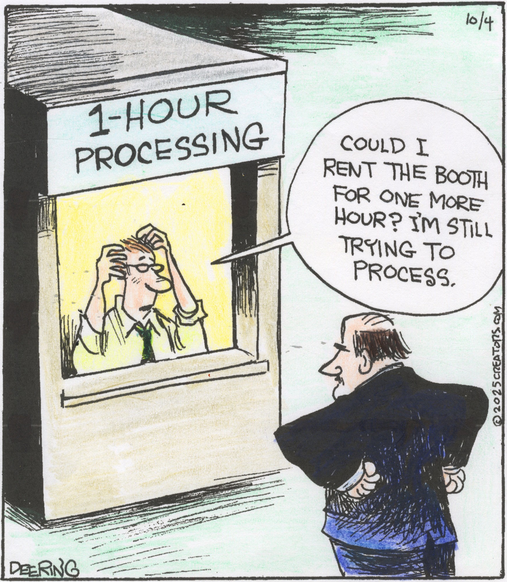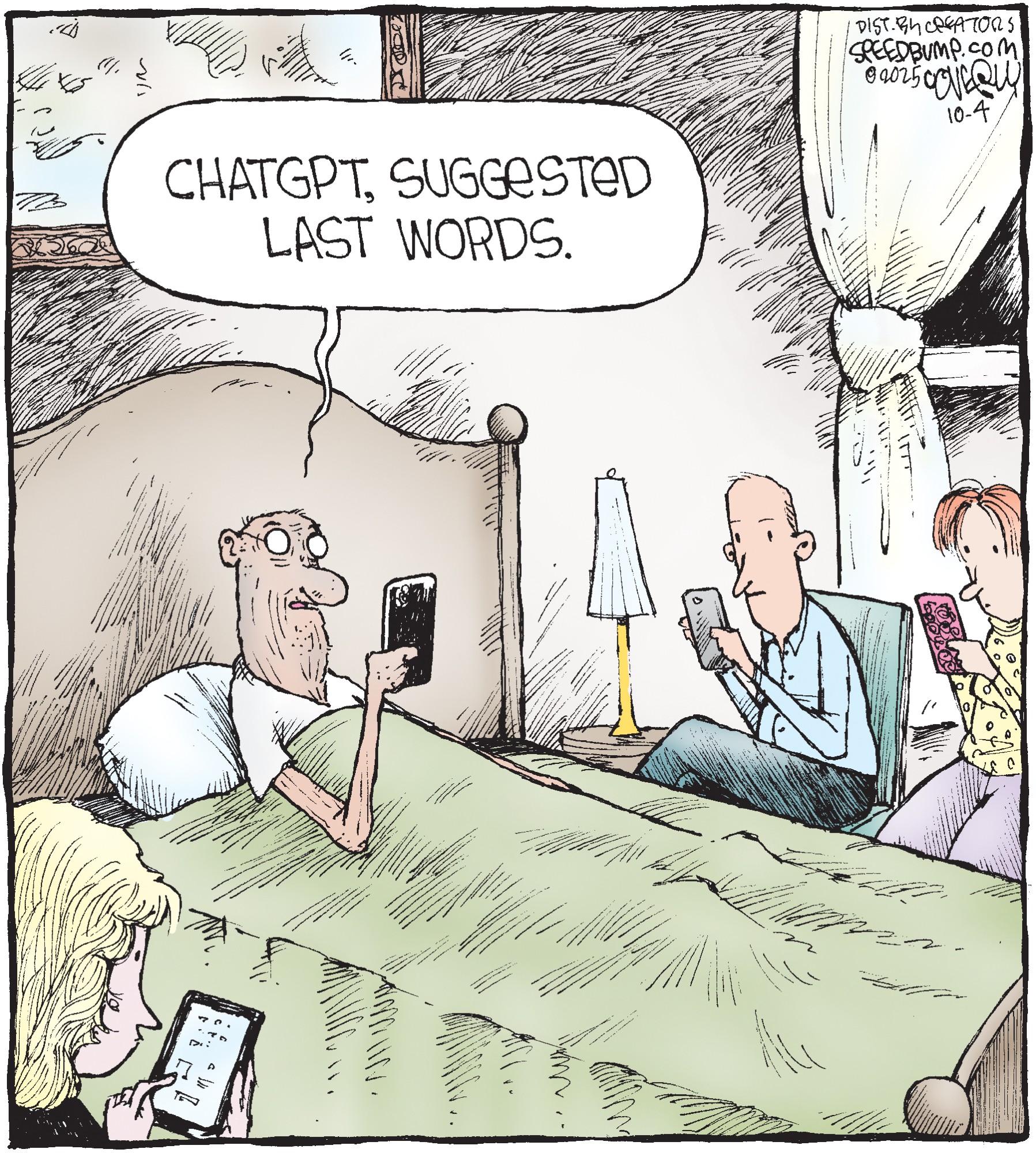 Dave Coverly admits there is no overriding theme, no tidy little philosophy that precisely describes what "Speed Bump" is about. "Basically," he says, "if life were a movie, these would be the outtakes." Creators Syndicate