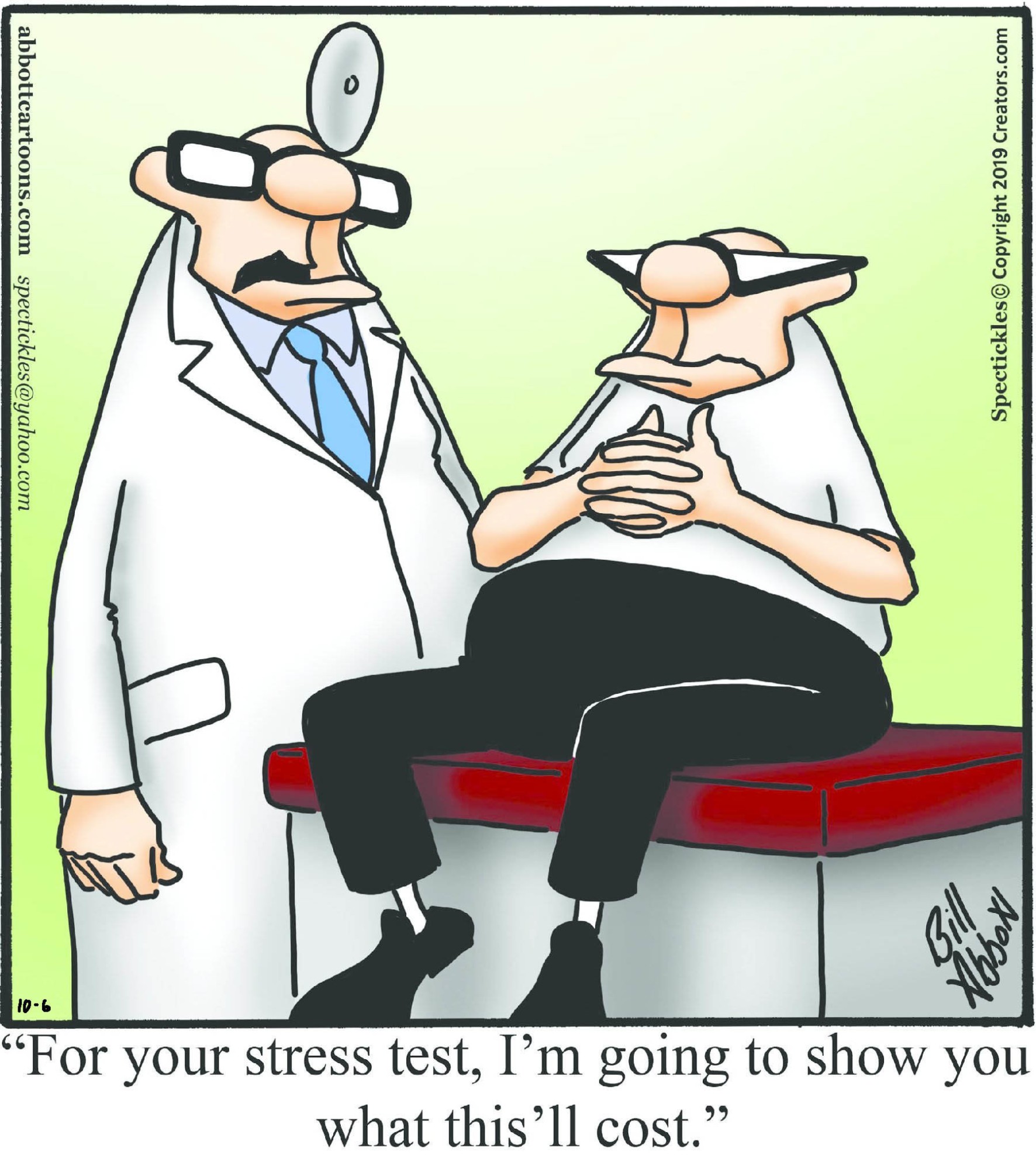 Spectickles, a cartoon primarily about a married couple with, to put it mildly, communication challenges, is an amalgamation of physical traits that author Bill Abbott finds humorous: the deadpan expression and gravity-tugged flesh of Walter Matthau, the powerful presence of Ethel Merman, the glasses of his great-grand-parents and a host of other subtleties. Creators Syndicate