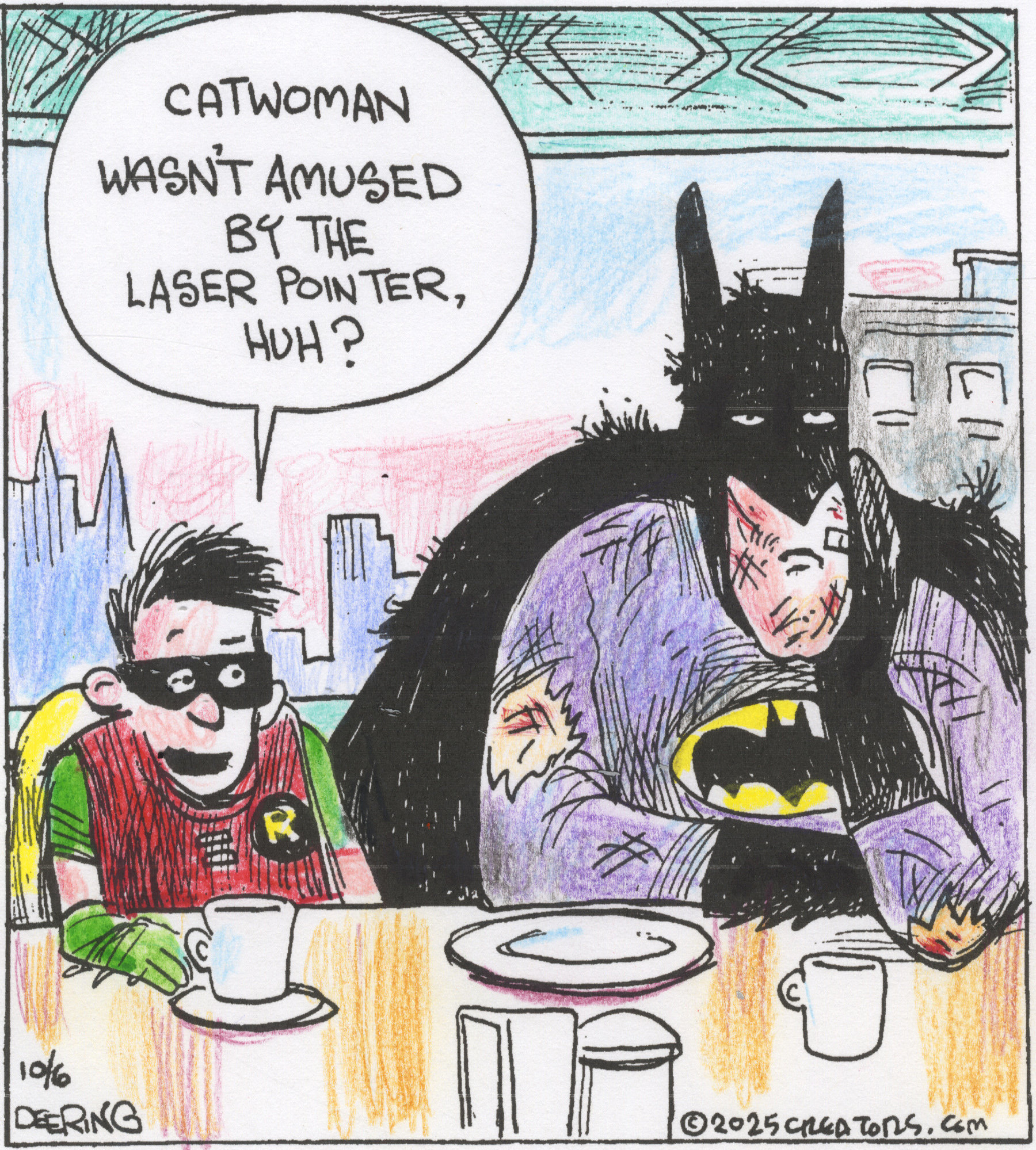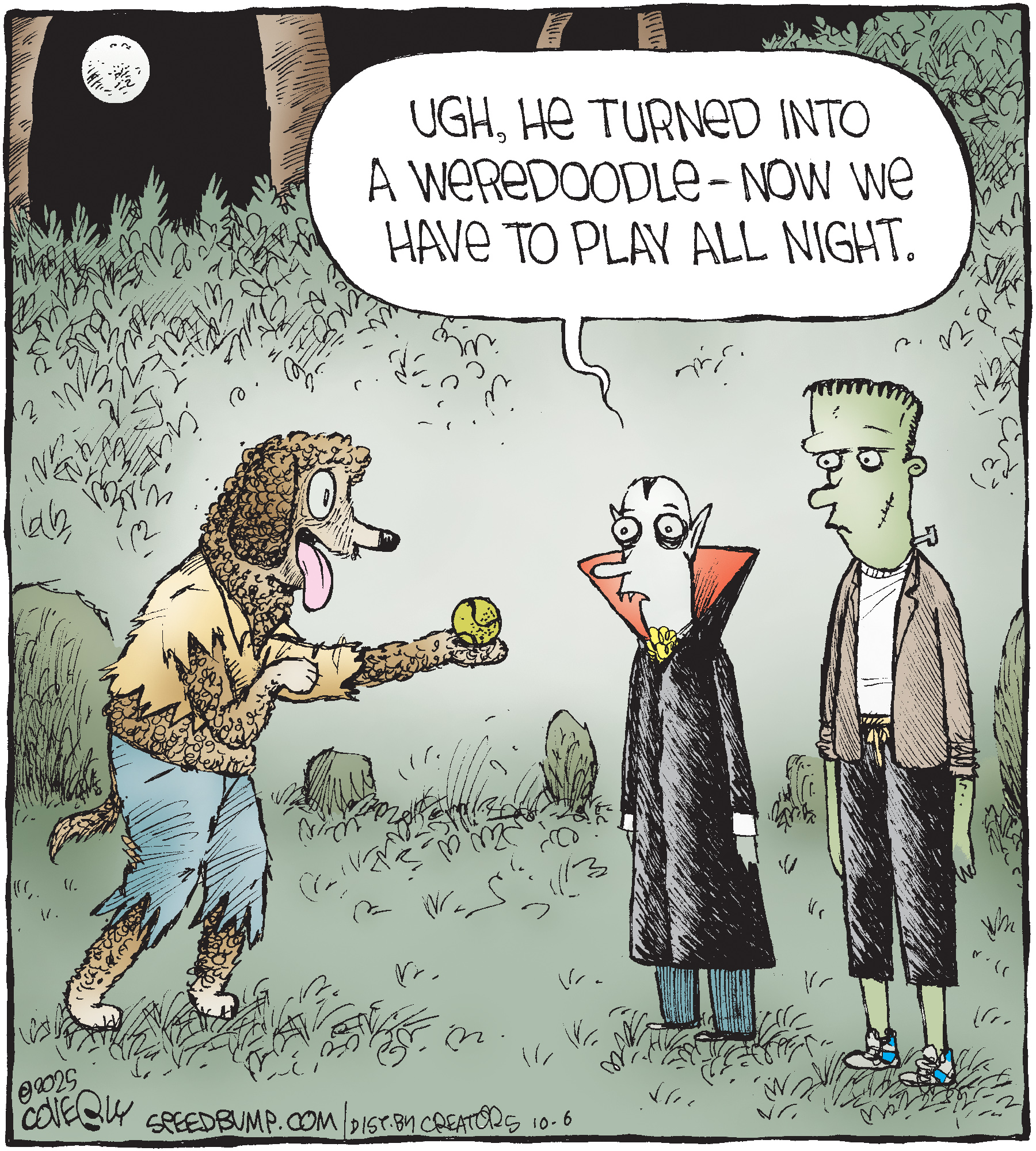 Dave Coverly admits there is no overriding theme, no tidy little philosophy that precisely describes what "Speed Bump" is about. "Basically," he says, "if life were a movie, these would be the outtakes." Creators Syndicate